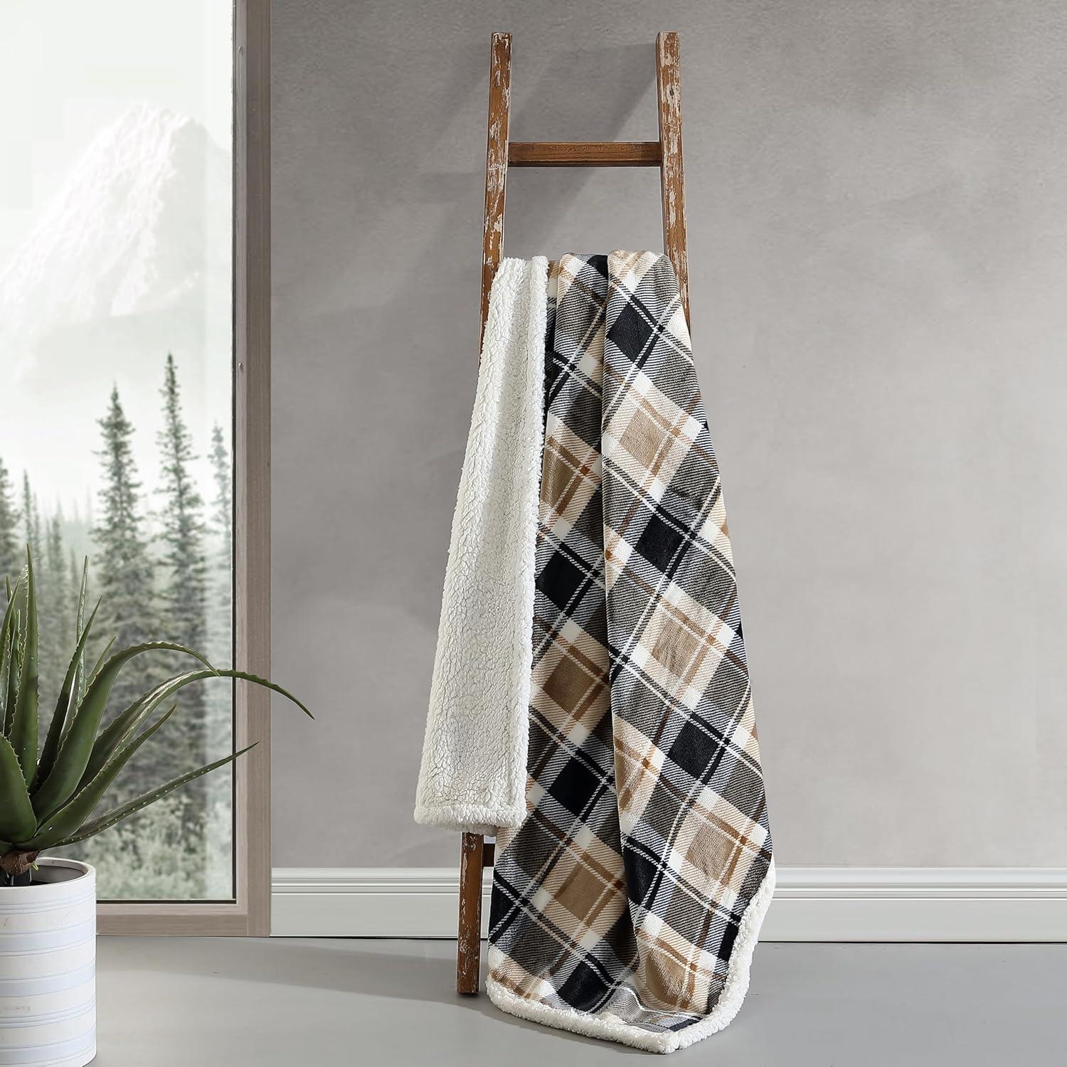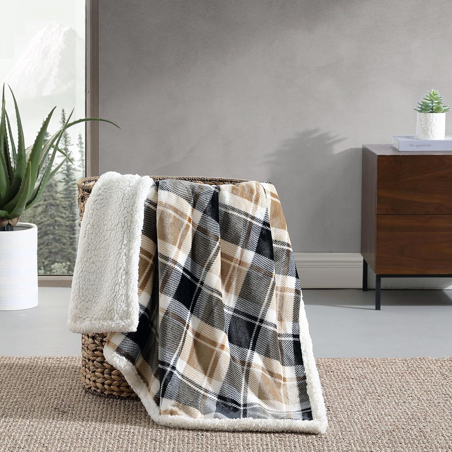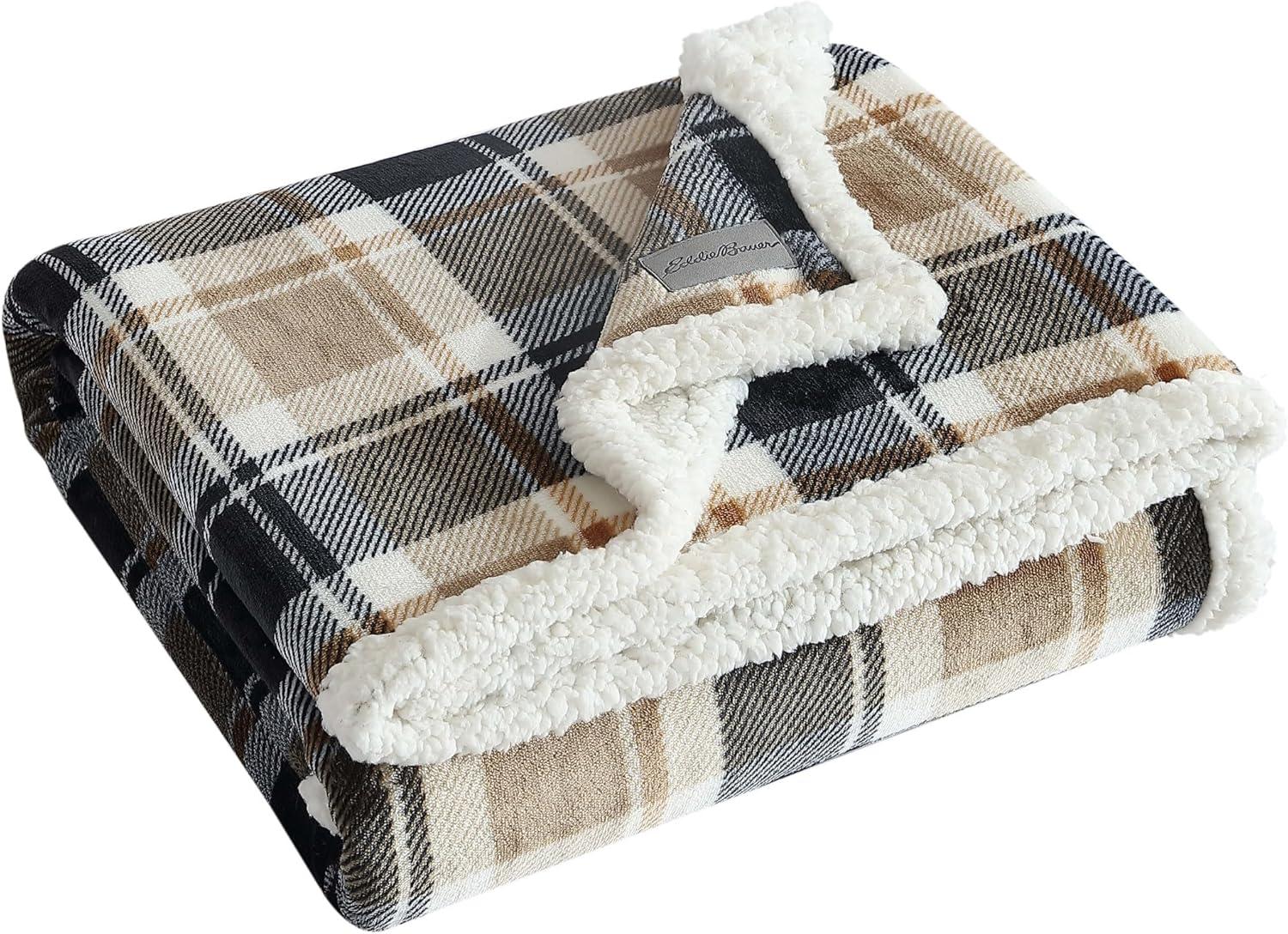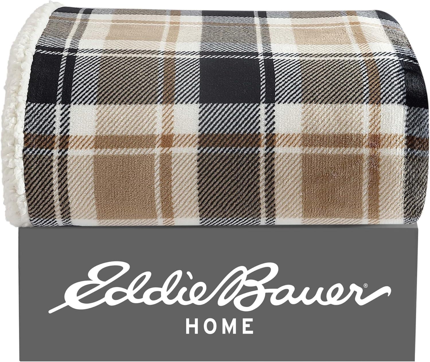 Eddie Bauer – Throw Blanket, Ultra-Soft & Reversible Plush Blanket, Oversized Bedding for Couch or Bed (Trailhead Plaid Red, 60″ x 70″)(Rugged Plaid Beige)