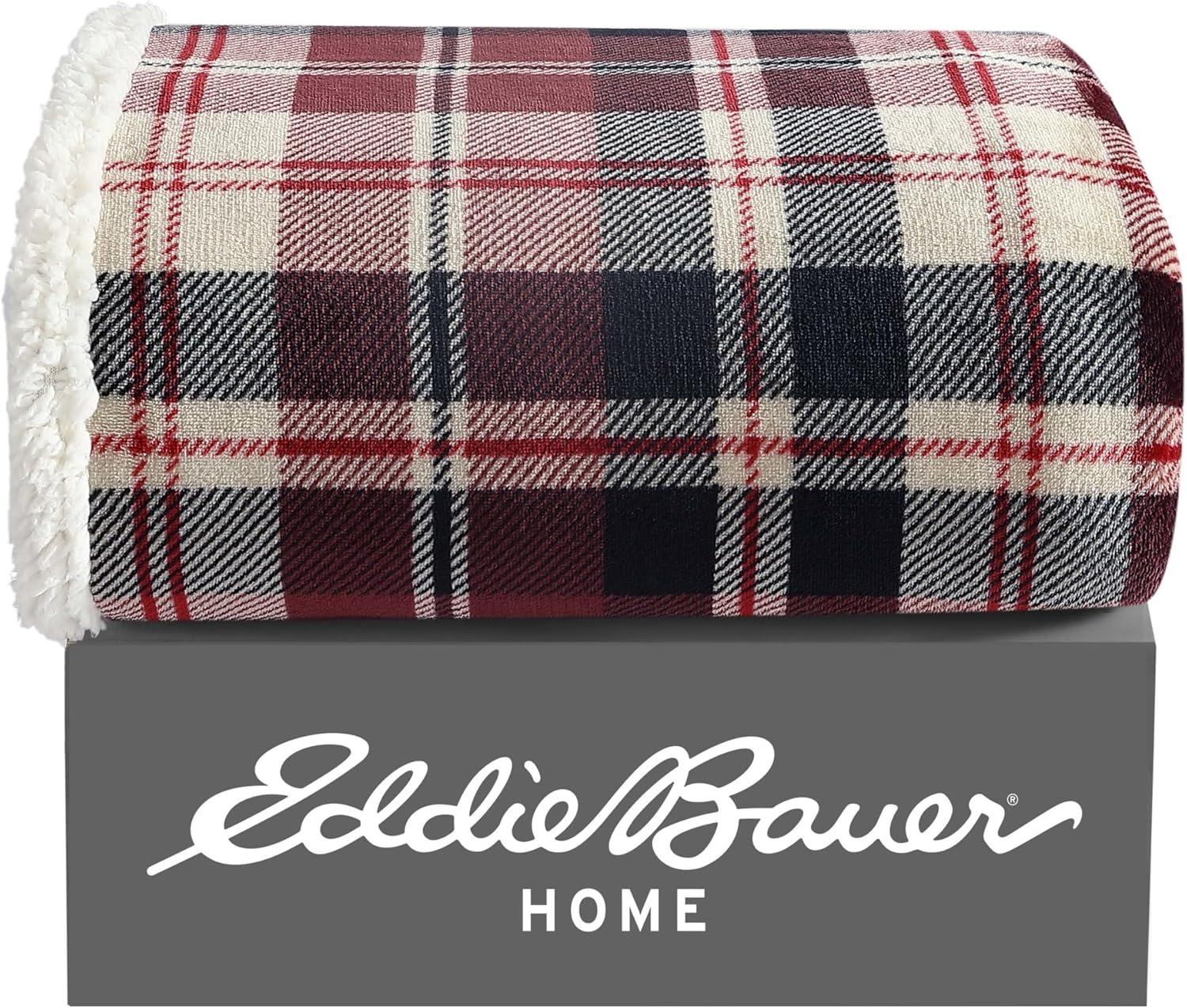 Eddie Bauer – Throw Blanket, Ultra-Soft & Reversible Plush Blanket, Oversized Bedding for Couch or Bed (Trailhead Plaid Red, 60″ x 70″)(Trailhead Plaid Red)