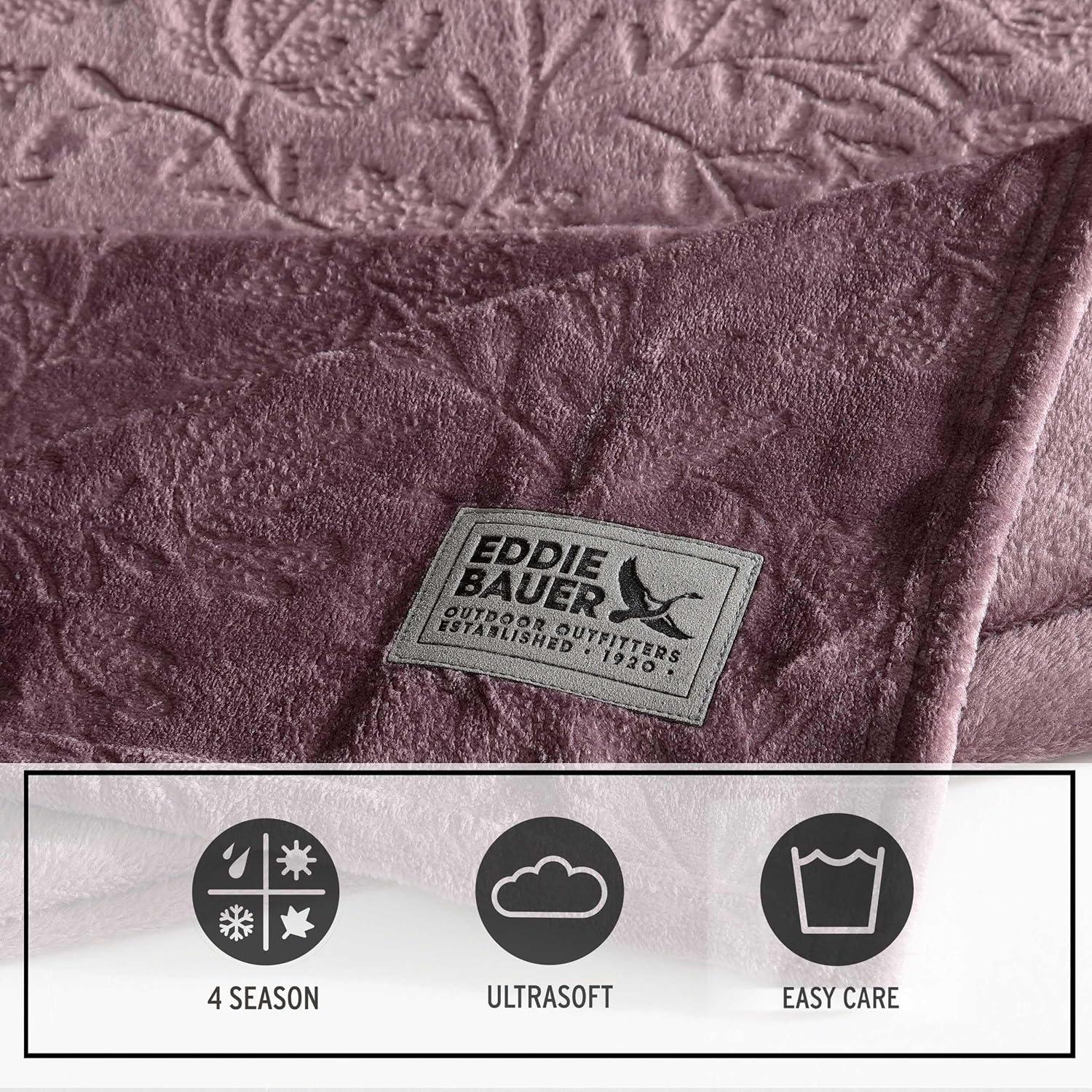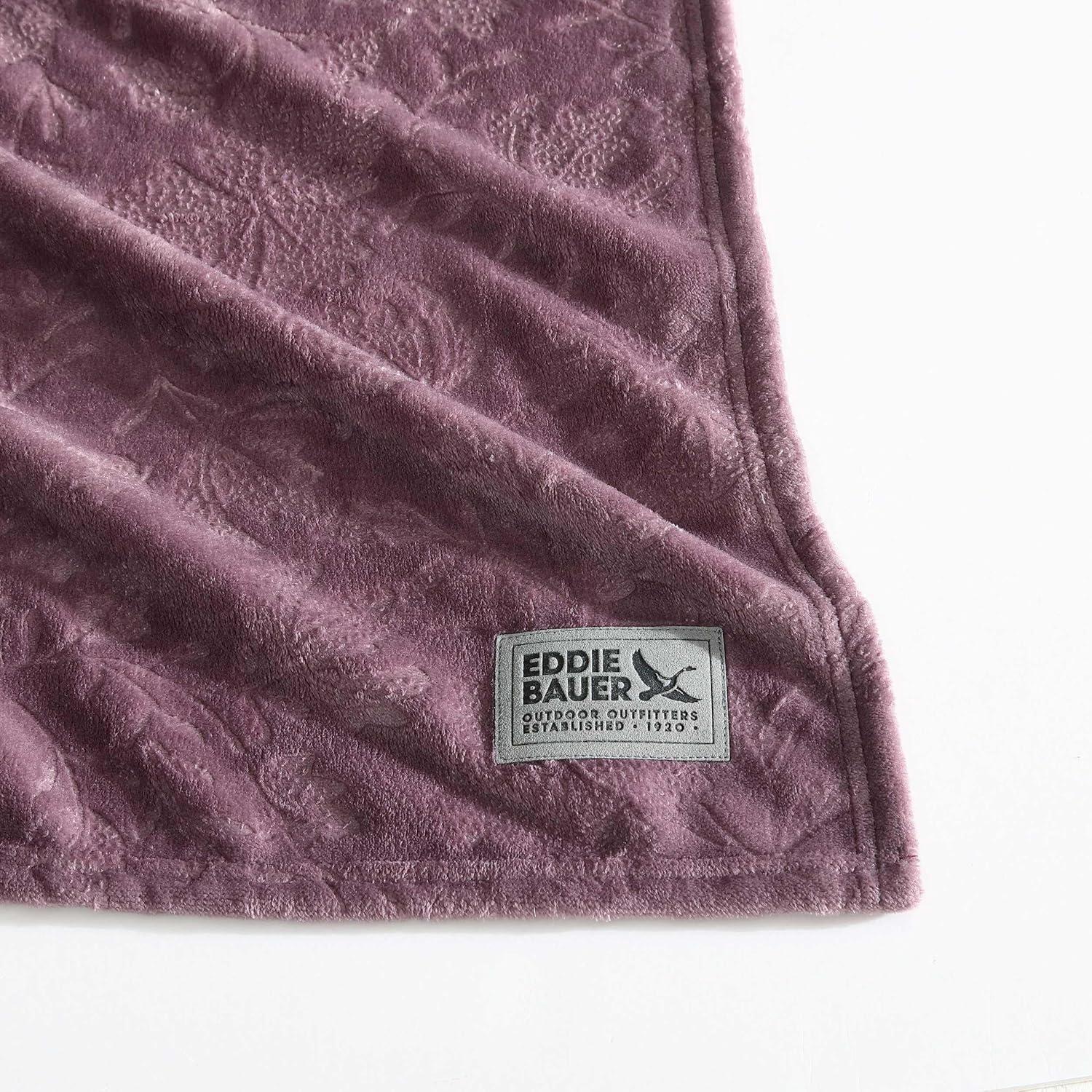 Eddie Bauer – Throw Blanket, Ultra-Soft & Reversible Plush Blanket, Oversized Bedding for Couch or Bed (Trailhead Plaid Red, 60″ x 70″)(Woodblock Floral Purple)