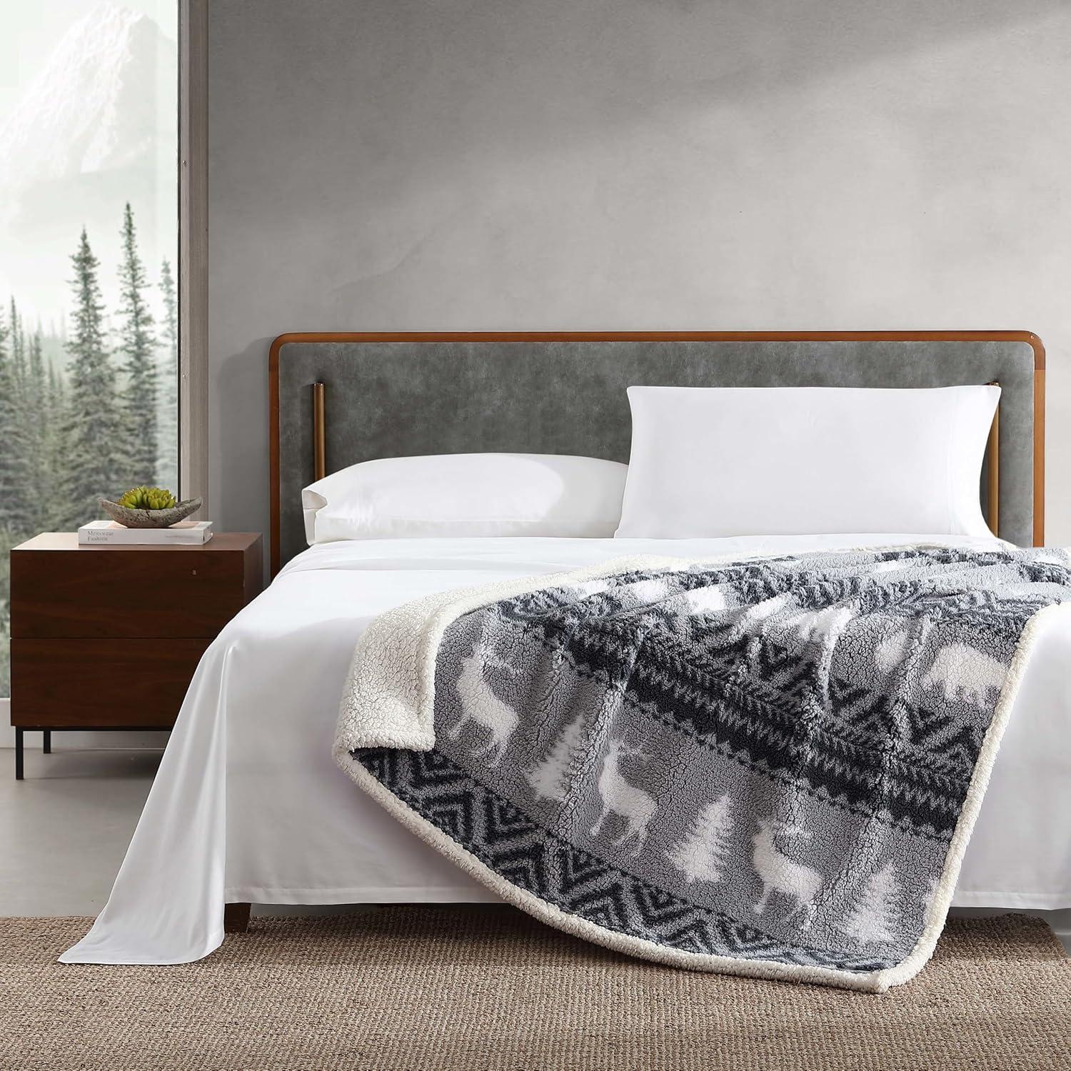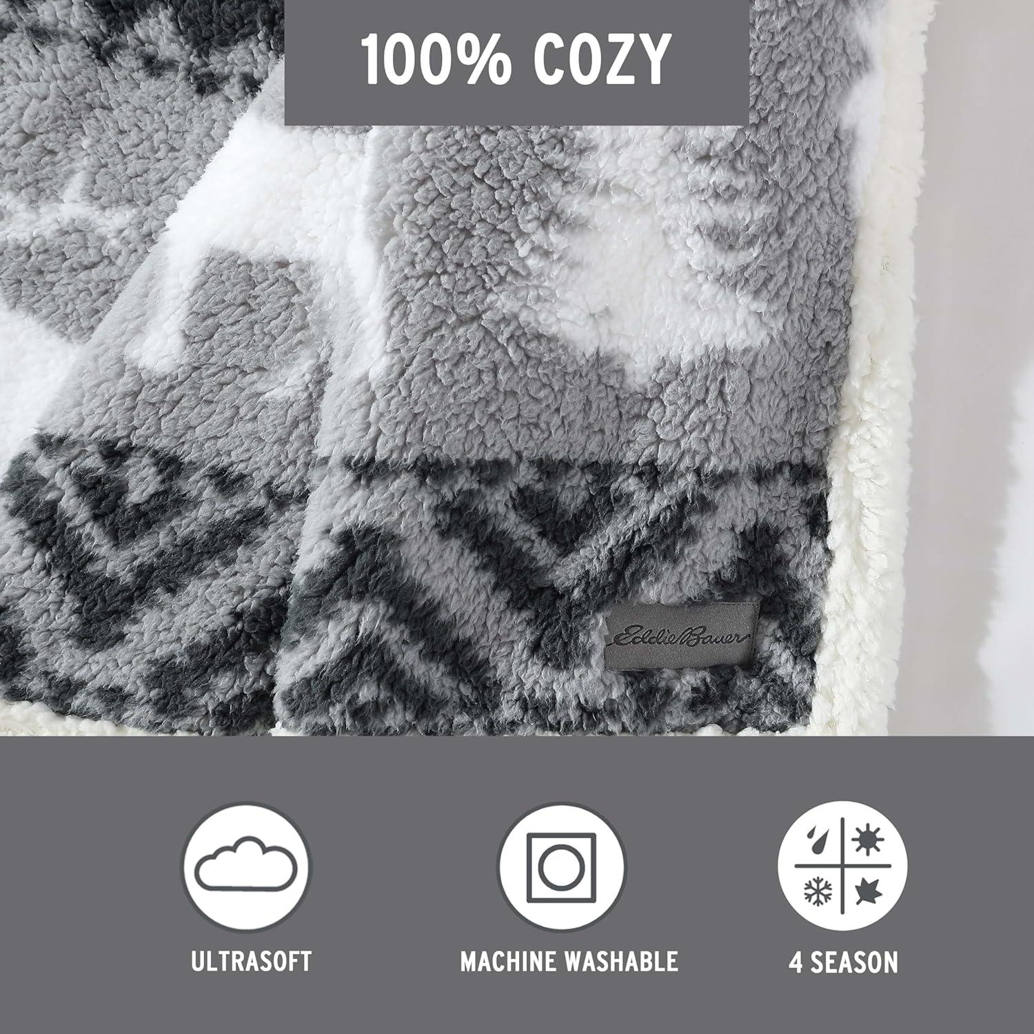 Eddie Bauer – Throw Blanket, Ultra-Soft & Reversible Plush Blanket, Oversized Bedding for Couch or Bed (Trailhead Plaid Red, 60″ x 70″)(Woodland Fair Isle Grey)