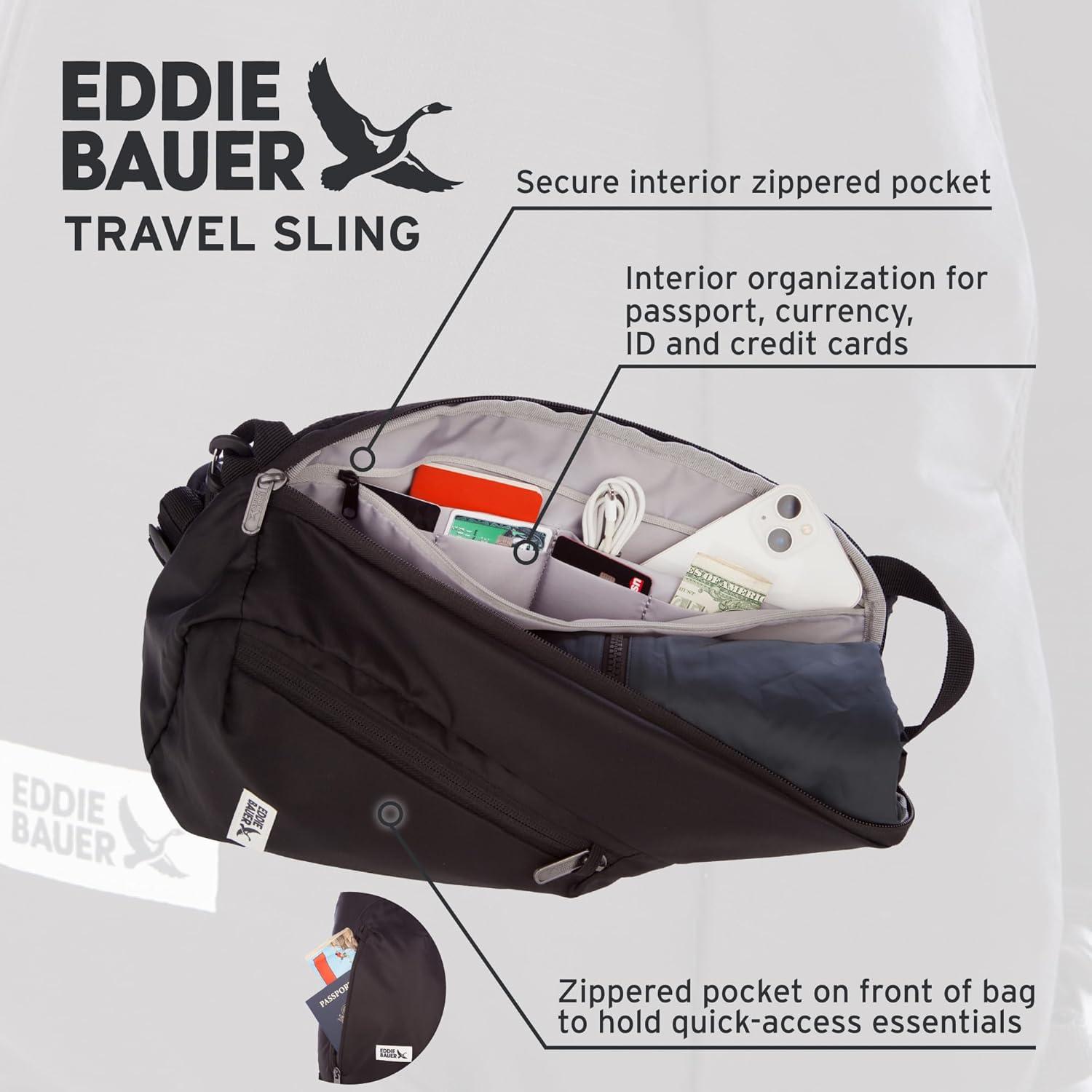Eddie Bauer Travel Sling Bag | RFID-Blocking | Security | Lightweight | Crossbody | Vacation | Everyday Carry | Backpack(Black)