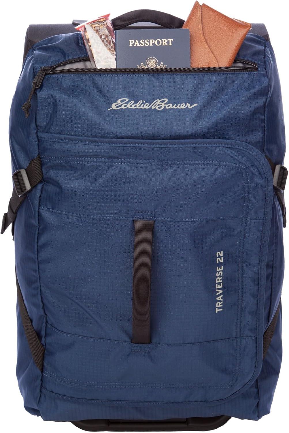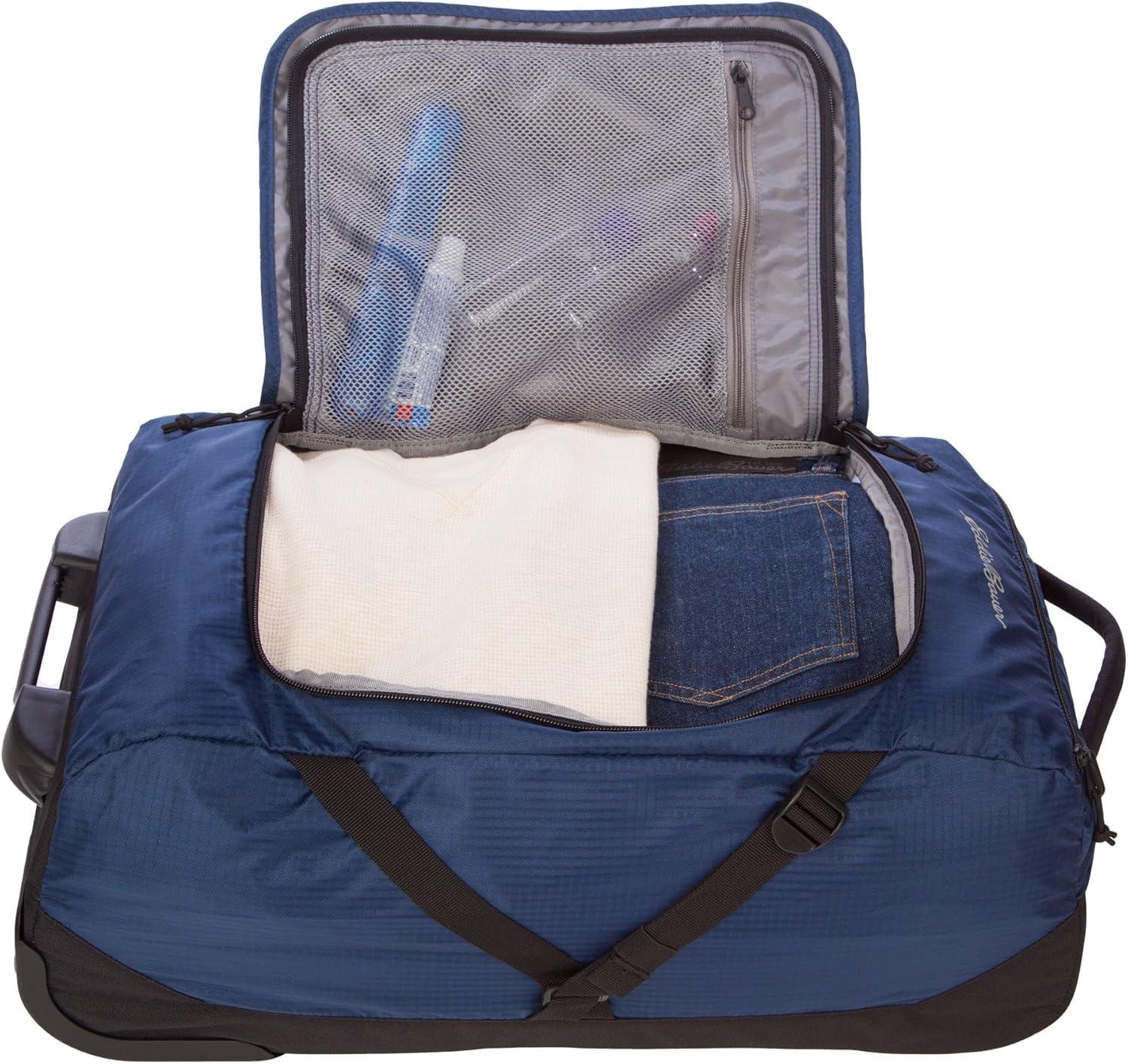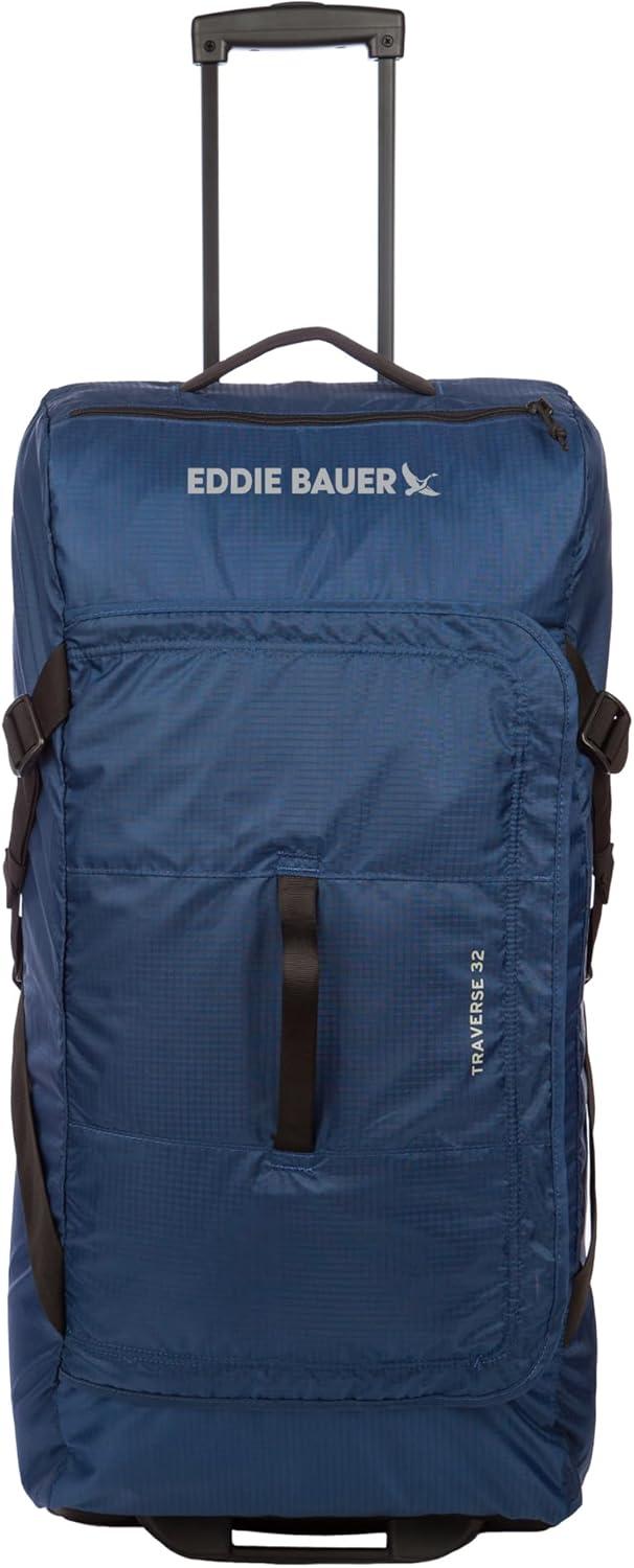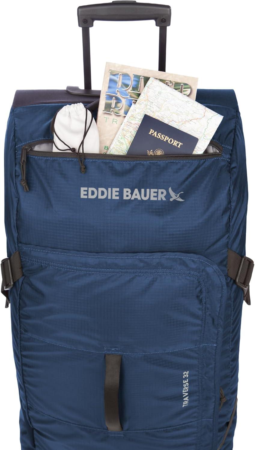 AMPLE PACKING SPACE & EFFICIENT COMPRESSION: The Eddie Bauer Traverse 32 Rolling Duffel Bag features a large 78L main chamber with a wide, U-shaped access making packing and unpacking simple. The interior pockets are ideal for organizing essentials, and exterior straps compress down any load, maximizing space and minimizing bulkiness.