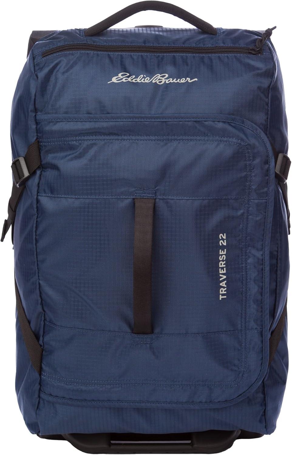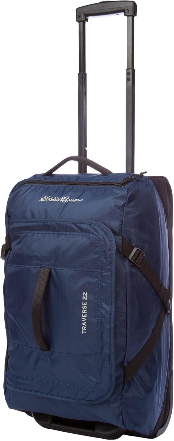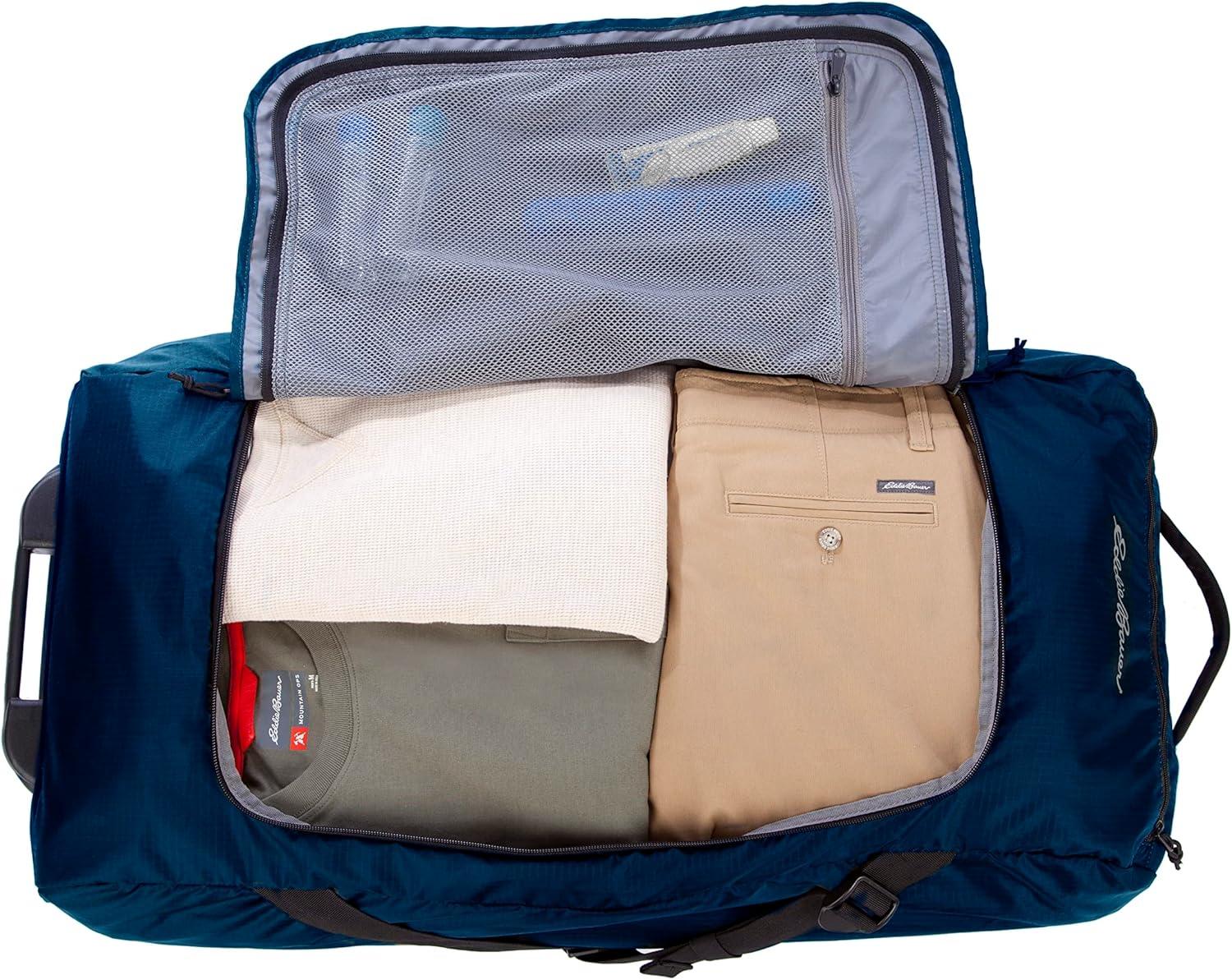 COMFORT AND DURABILITY: This Eddie Bauer Duffle features ergonomic retracting telescoping handle and reinforced inline skate wheels for easy maneuvering wherever the road takes you. With ultra-tough, ripstop polyester material on the outside, it's built to hold up to long travel days.