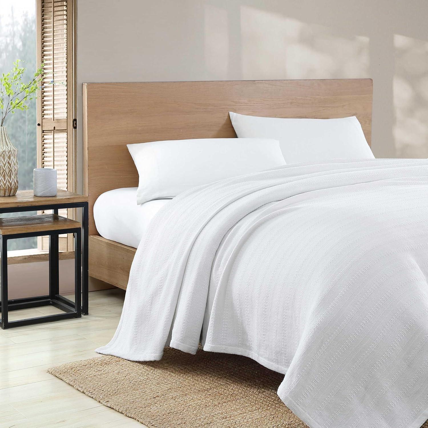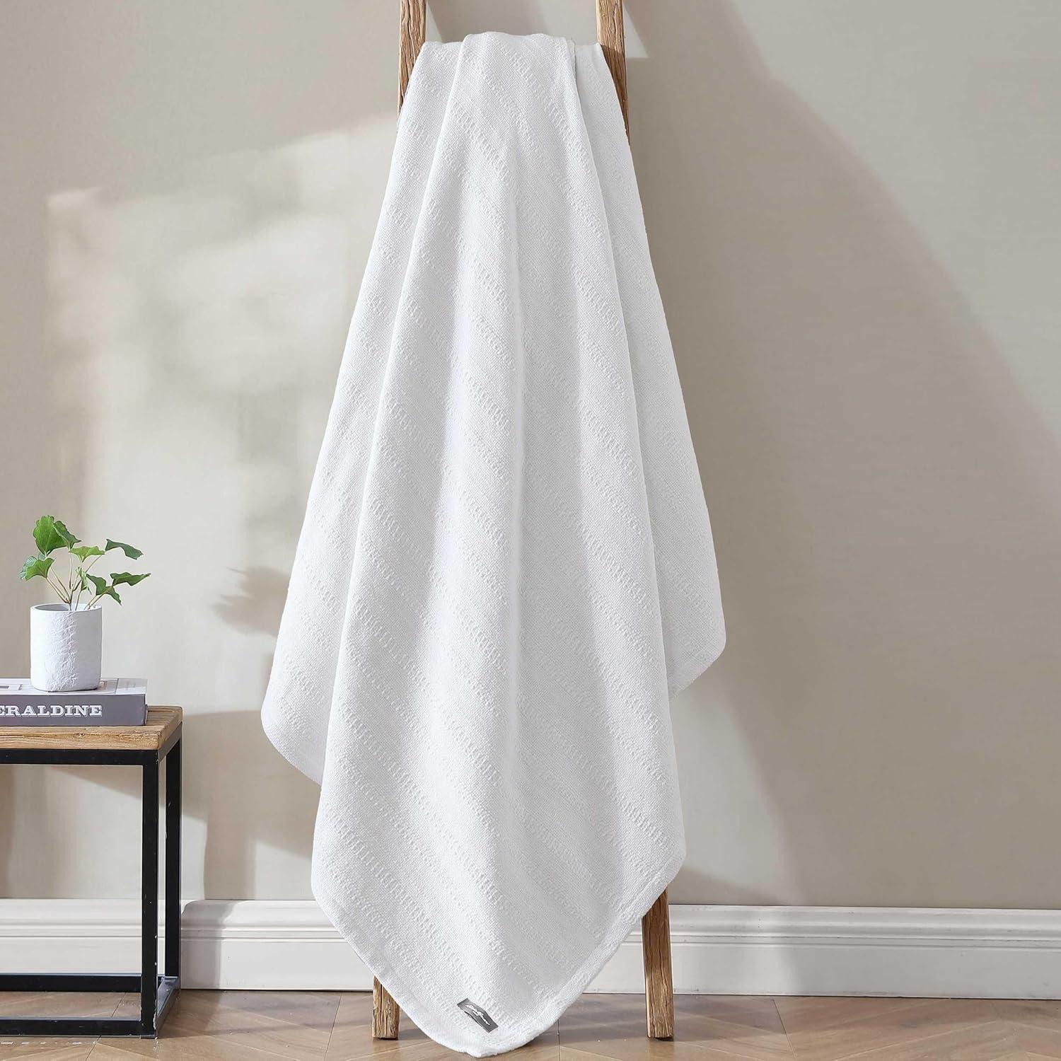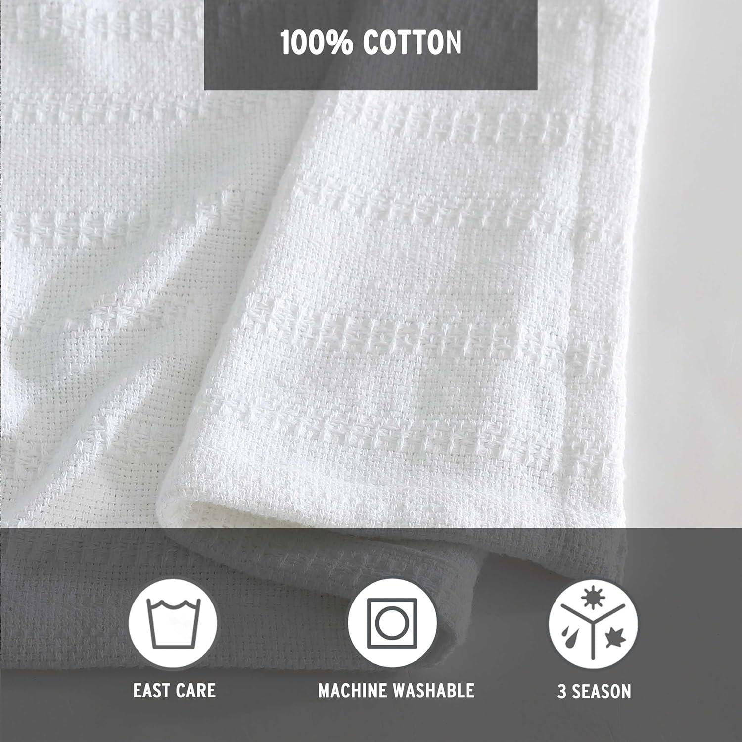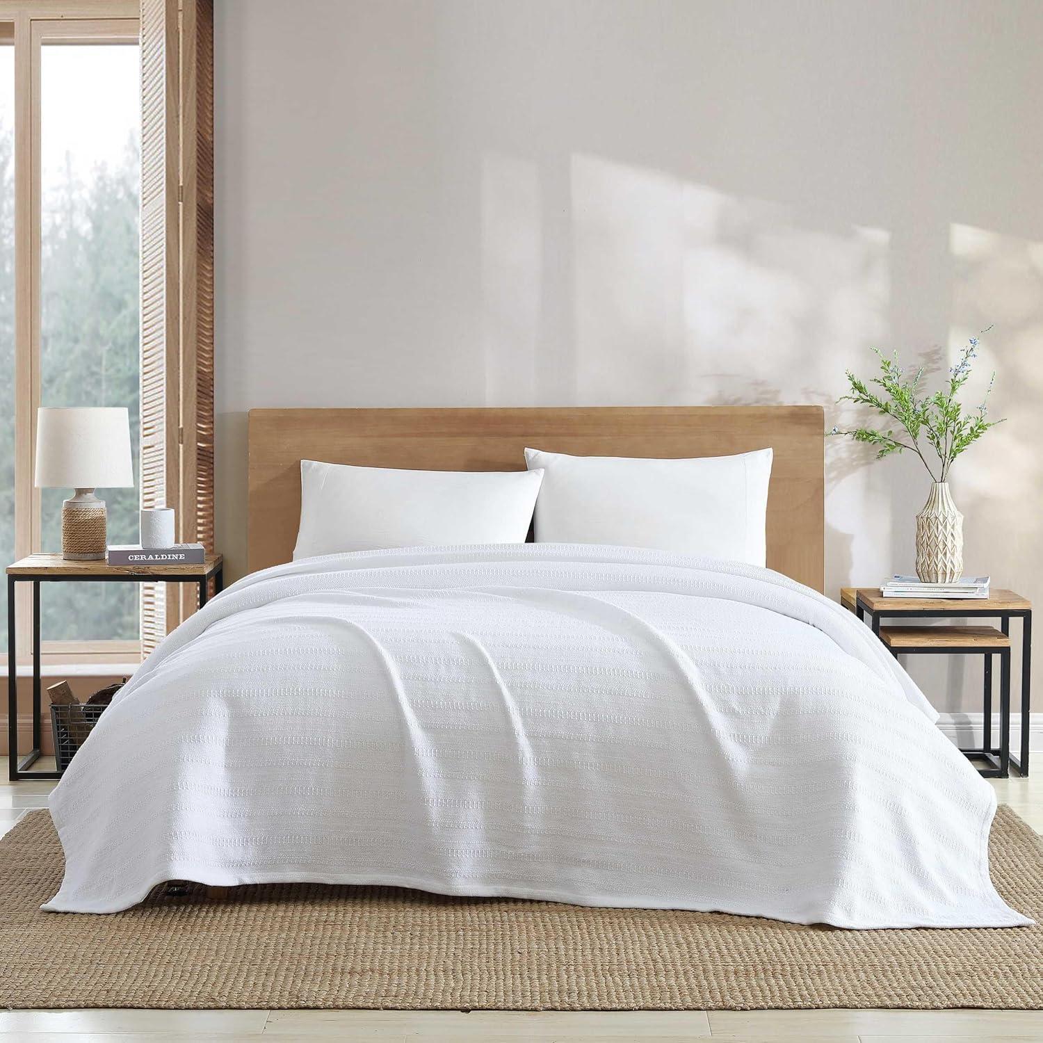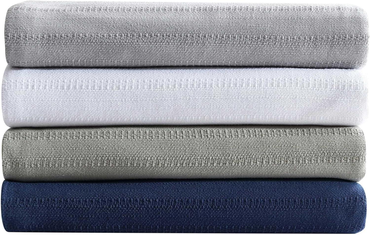 Eddie Bauer – Twin Blanket, Premium Cotton Variegated Weave Bedding, Striped Bedding Set, Oeko-Tex Certified (Variegated Weave Stripe Green, Twin)(White)