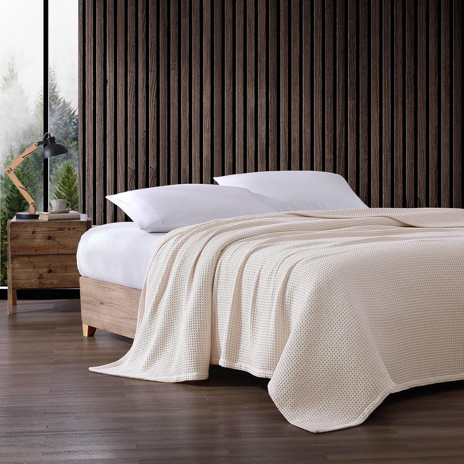 Eddie Bauer – Twin Blanket, Super Soft & Medium Weight, Softens Every Wash (Solid Waffle White, Twin)(Solid White)