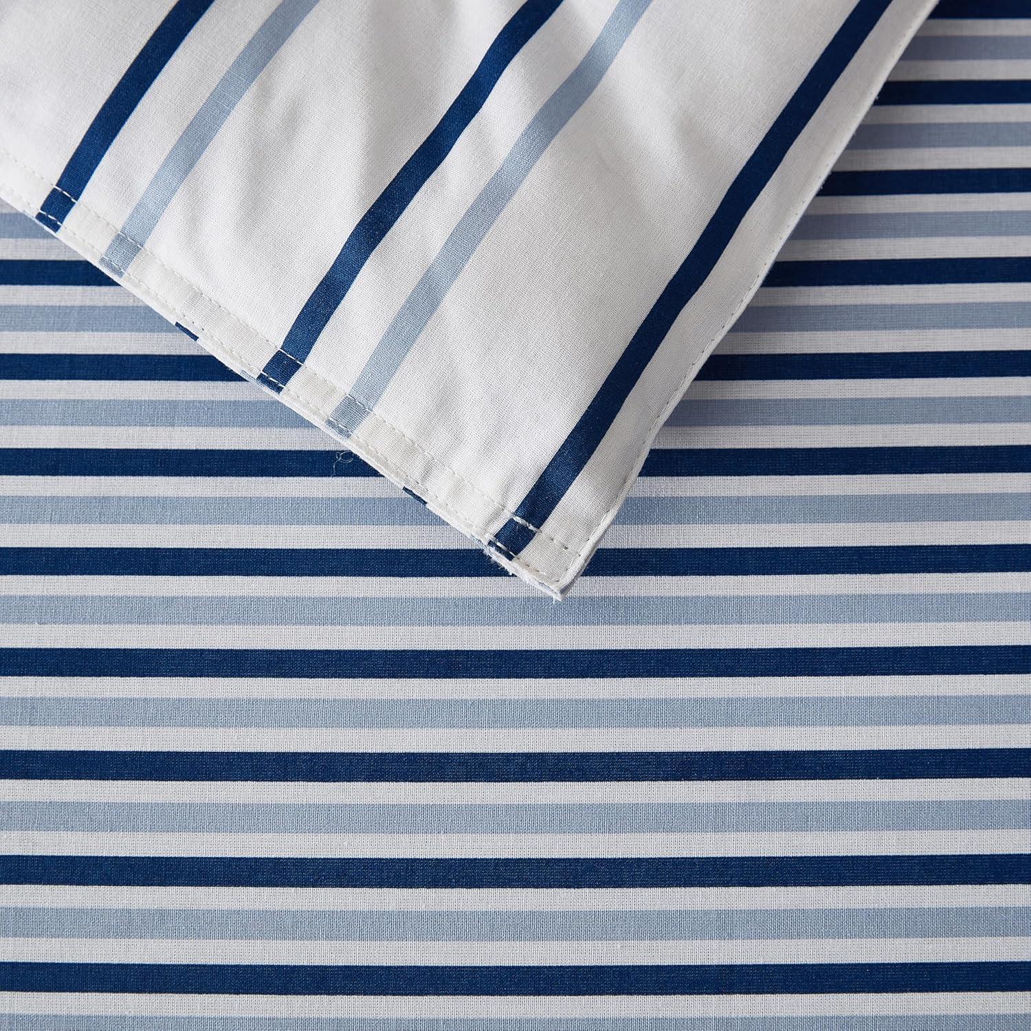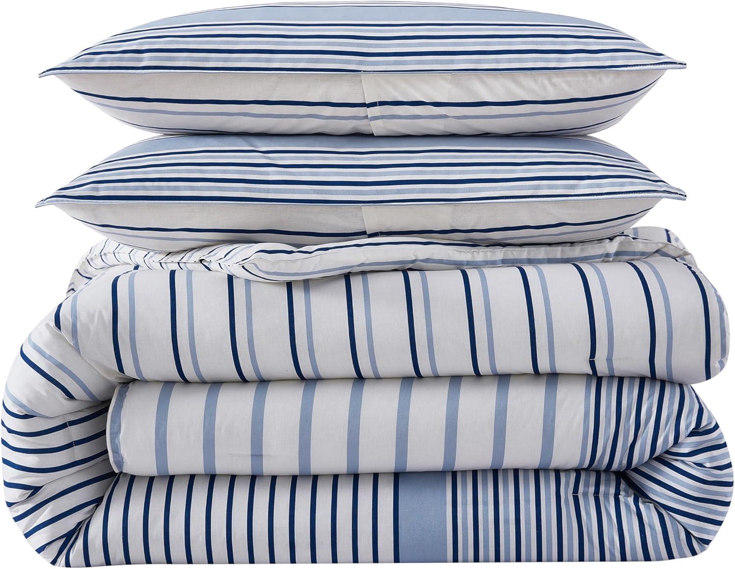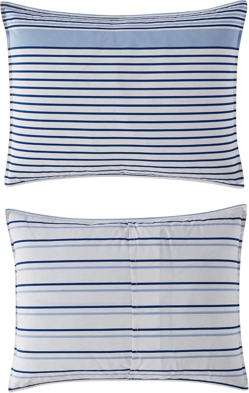 Eddie Bauer – Twin Comforter Set, Cotton Bedding with Matching Sham, Two-Piece Back Closure, Dorm Essentials (Cooper Stripe Blue)(Cooper Stripe Blue)