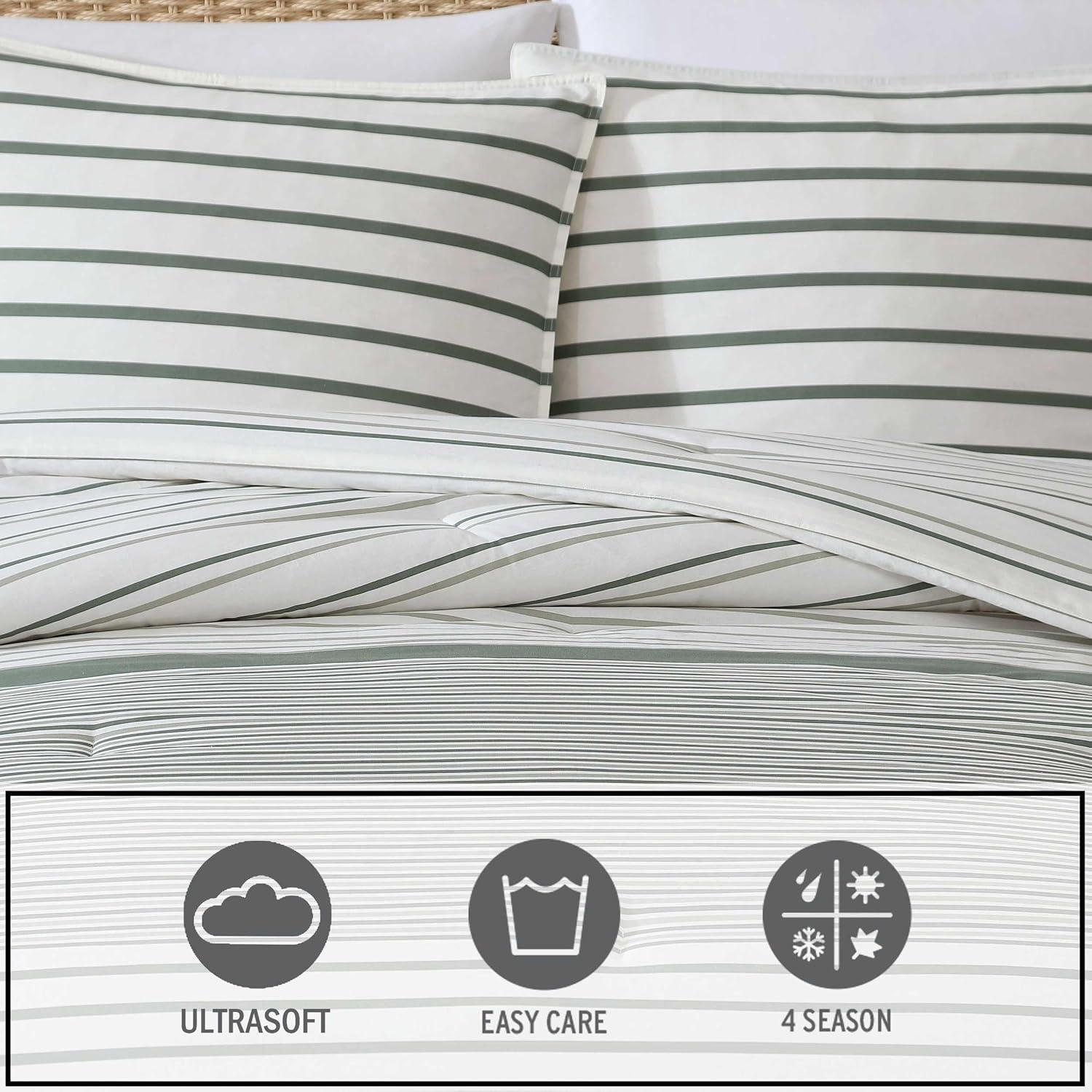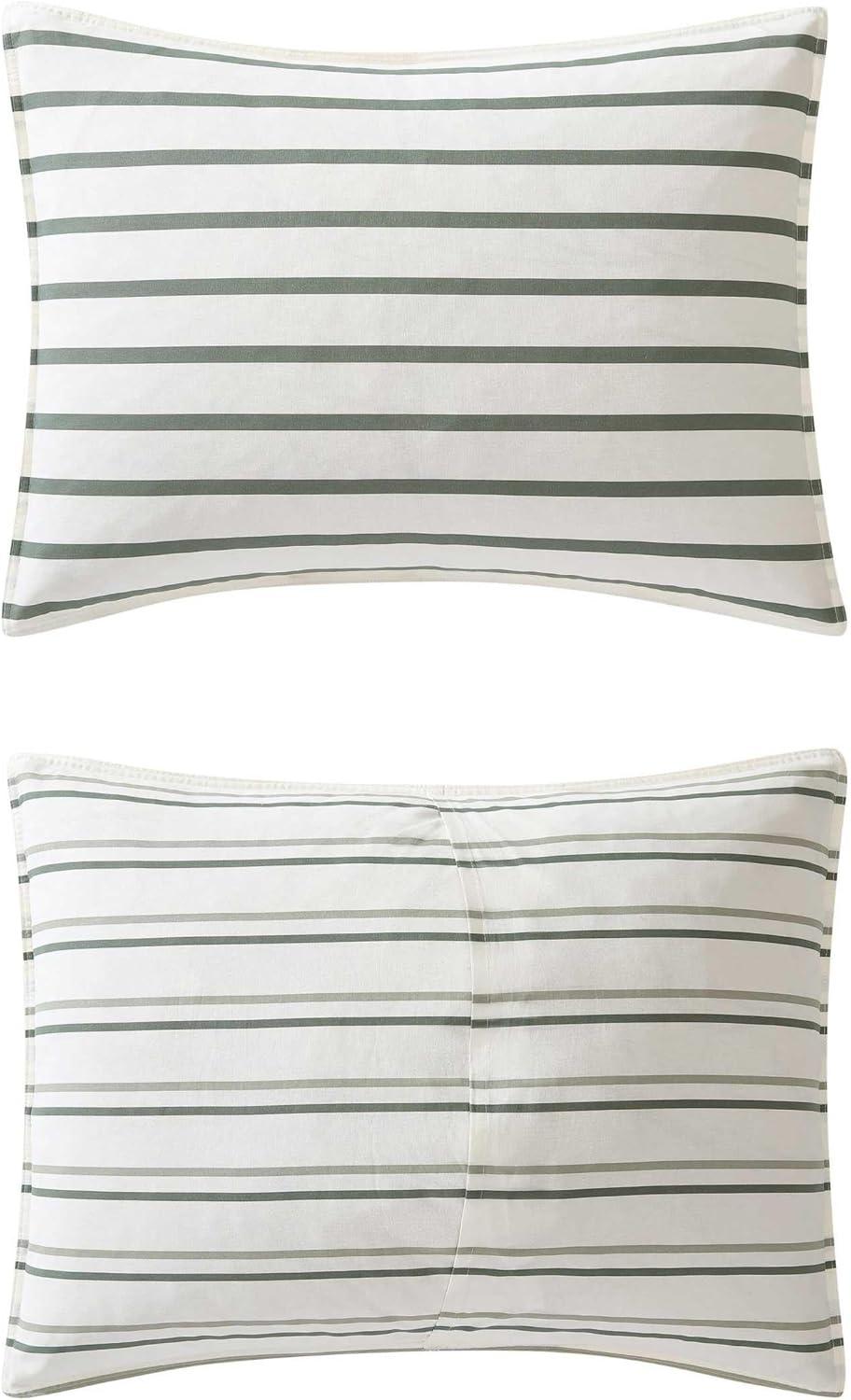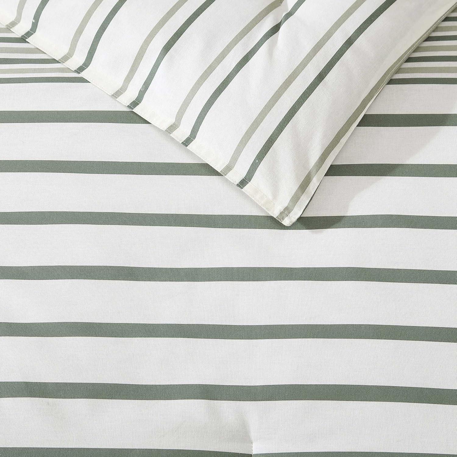 Eddie Bauer – Twin Duvet Cover Set, Luxuriously Soft Bedding with Matching Sham, Buttons & Corner Ties to Ensure Placement (Cooper Stripe Green, Twin)(Cooper Stripe Green)