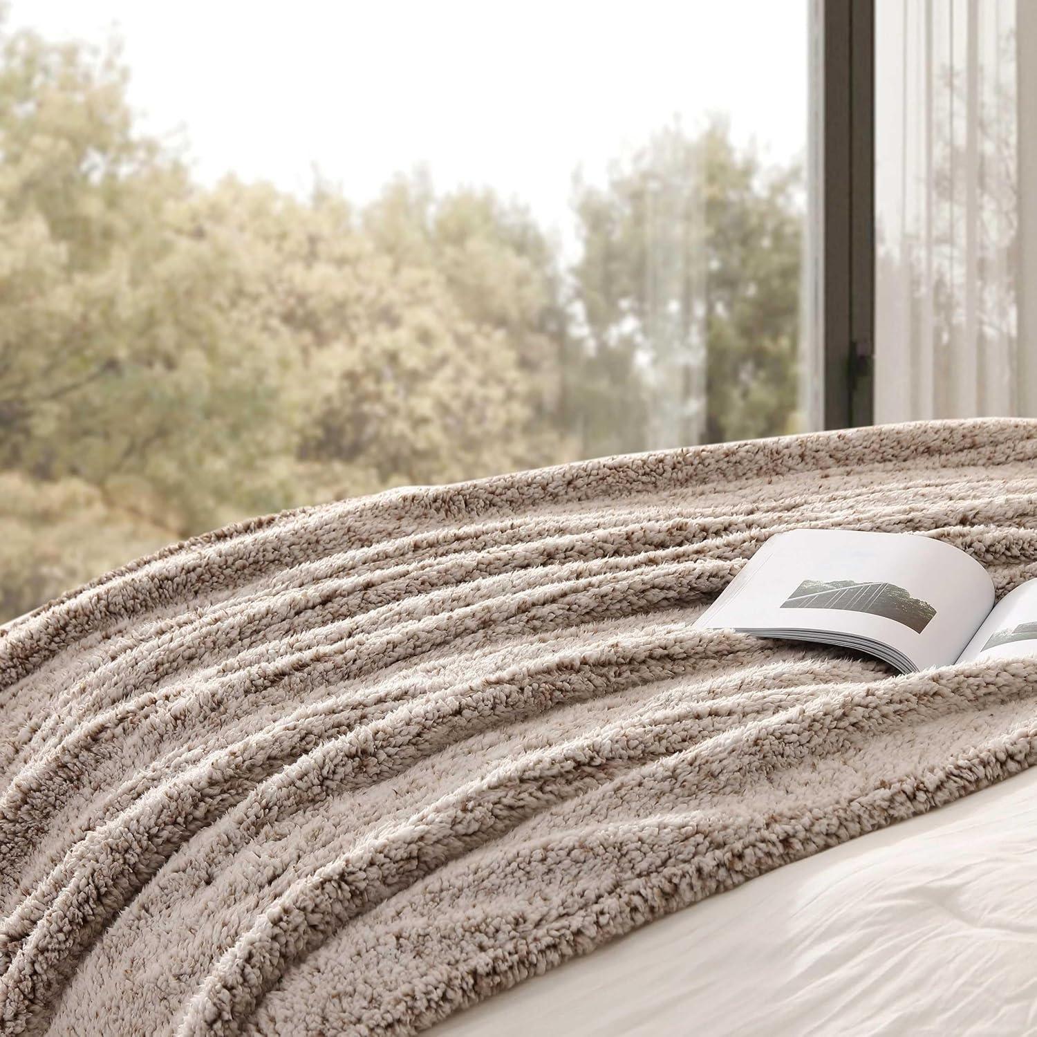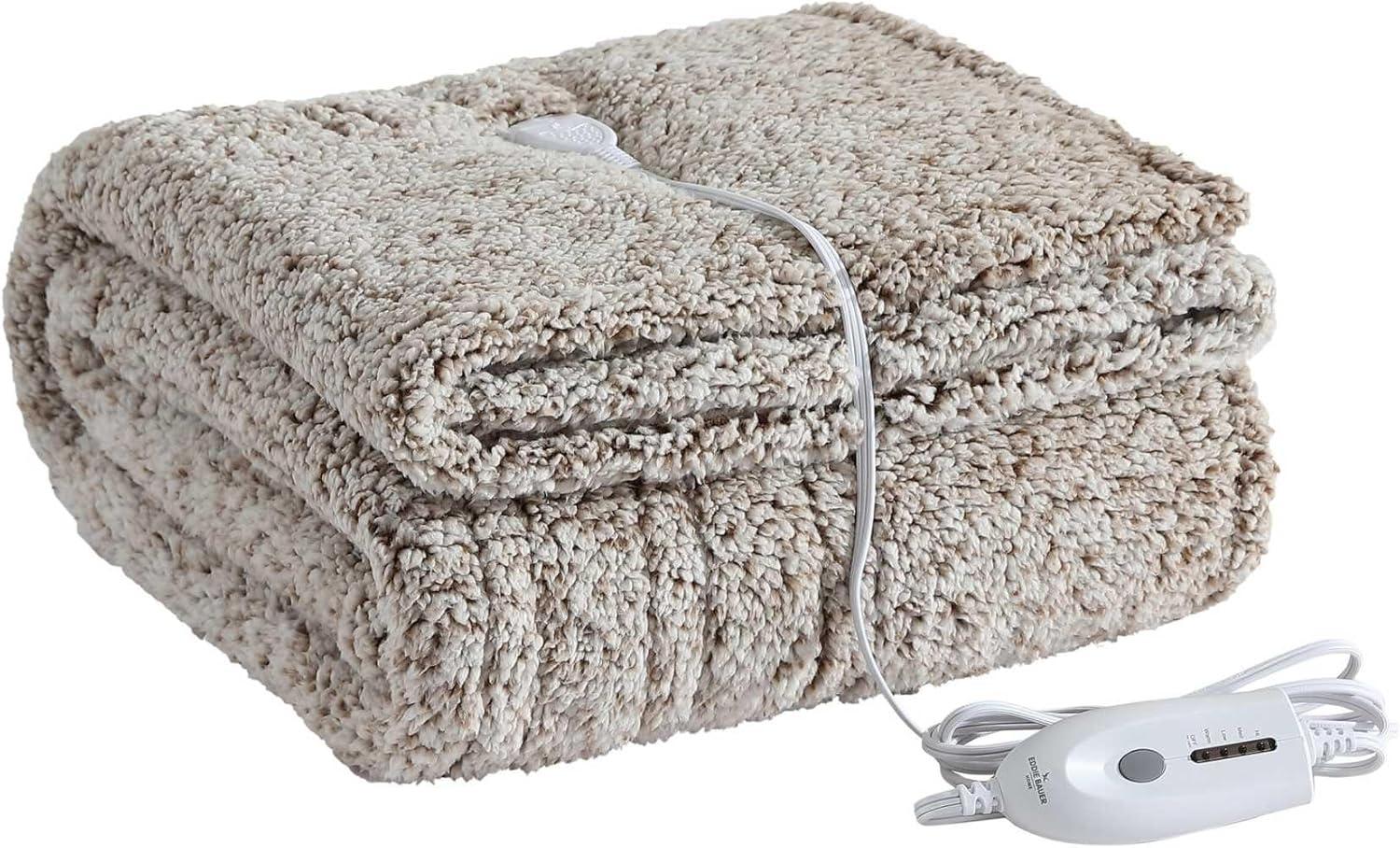 Eddie Bauer – Twin Heated Blanket, Ultra-Soft Rib Plush Throw Blanket with Solid Sherpa Reverse, Knitted Bedding with 10 Heat Settings & Auto Shut-Off (Lookout Mountain Grey)(Lookout Mountain Brown)