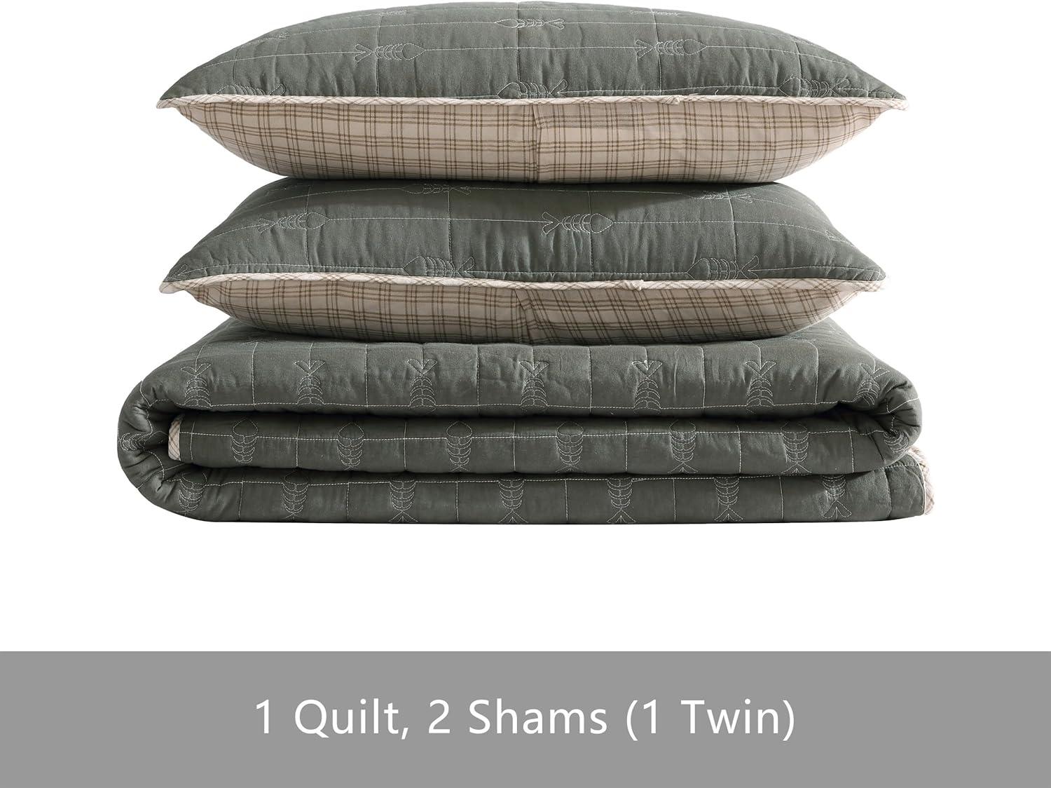 Eddie Bauer – Twin Quilt Set, Reversible Bedding with Matching Sham, Lightweight Home Decor for All Seasons (Hidden Lake Blue, Twin)(Troutdale Green)