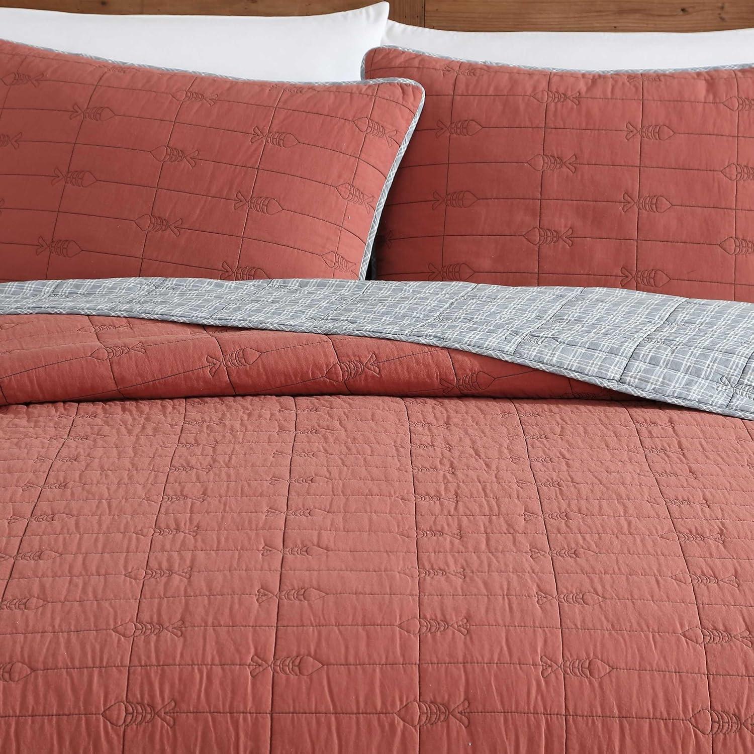 Eddie Bauer – Twin Quilt Set, Reversible Bedding with Matching Sham, Lightweight Home Decor for All Seasons (Hidden Lake Blue, Twin)(Troutdale Orange)