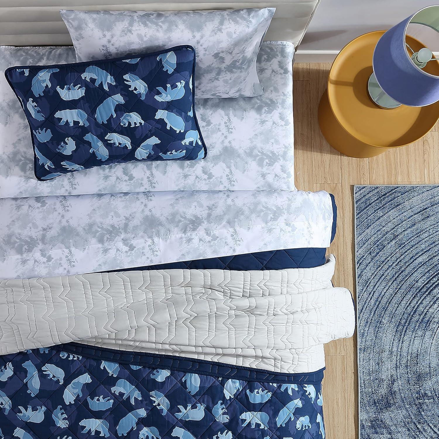 Eddie Bauer – Twin Quilt Set, Reversible Cotton Bedding with Matching Sham, Lightweight Home Decor for All Seasons (Eastmont Navy, Twin)(Camp Camo Navy)