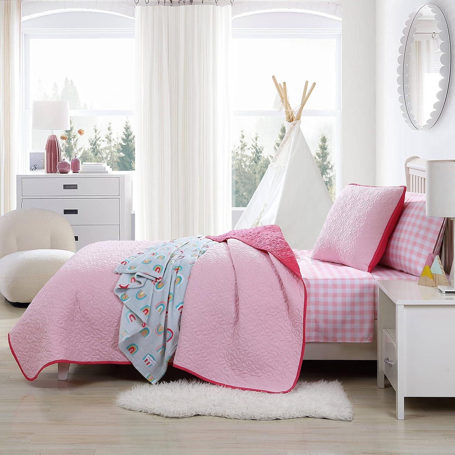 Eddie Bauer – Twin Quilt Set, Reversible Cotton Bedding with Matching Sham, Lightweight Home Decor for All Seasons (Eastmont Navy, Twin)(Garden Pink)