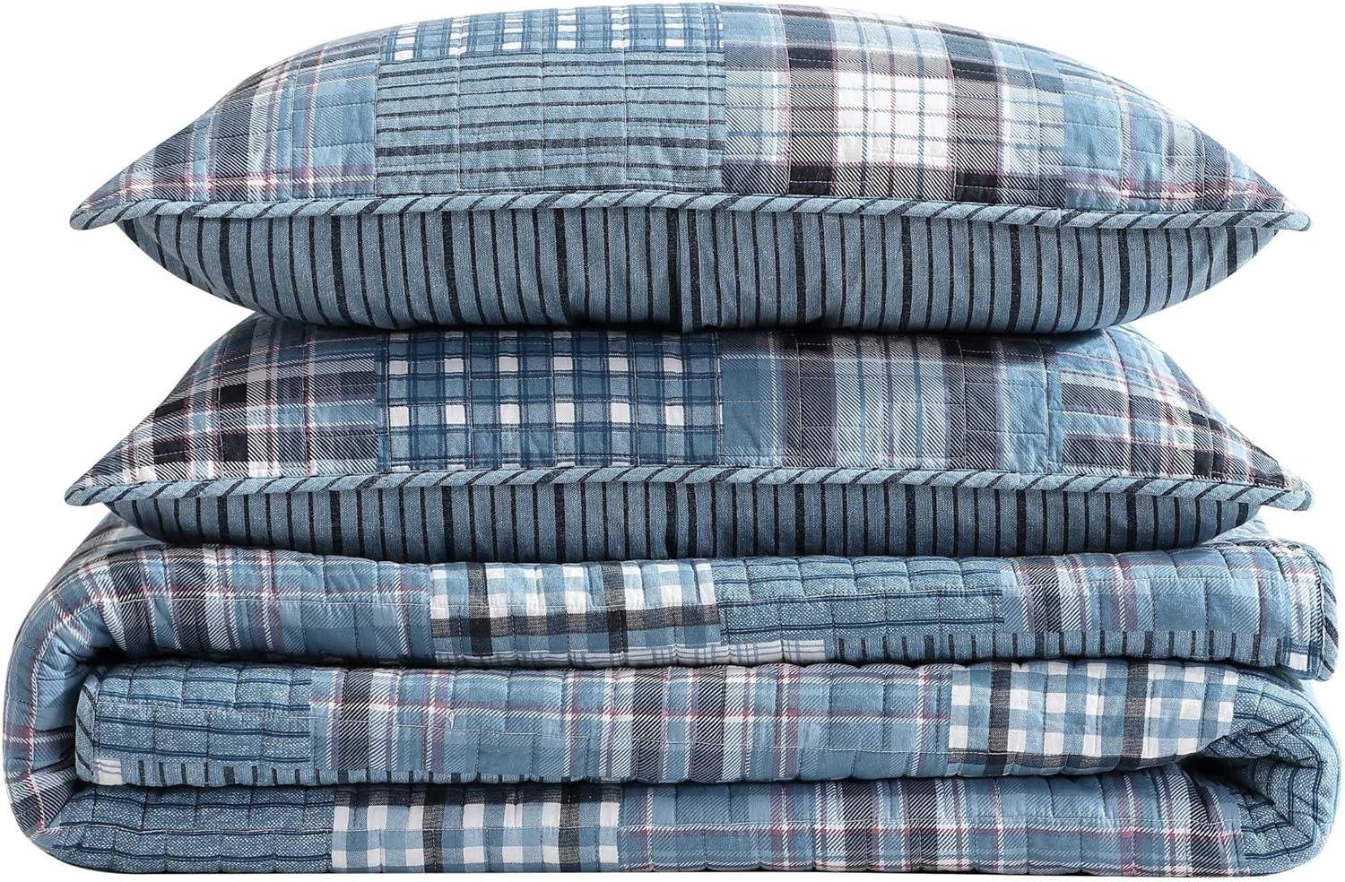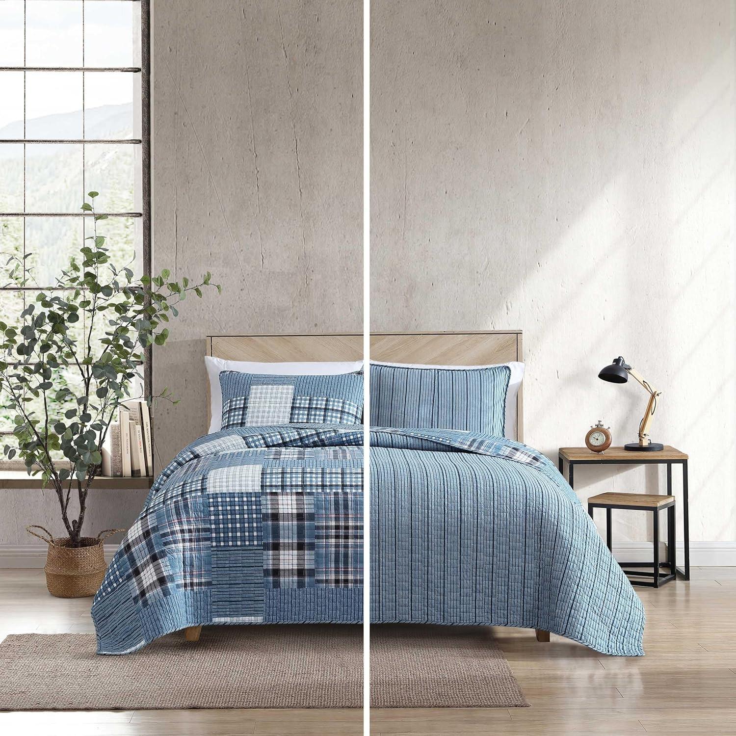 Eddie Bauer – Twin Quilt Set, Reversible Cotton Bedding with Matching Sham, Lightweight Home Decor for All Seasons (Eastmont Navy, Twin)(Hawthorne Blue)