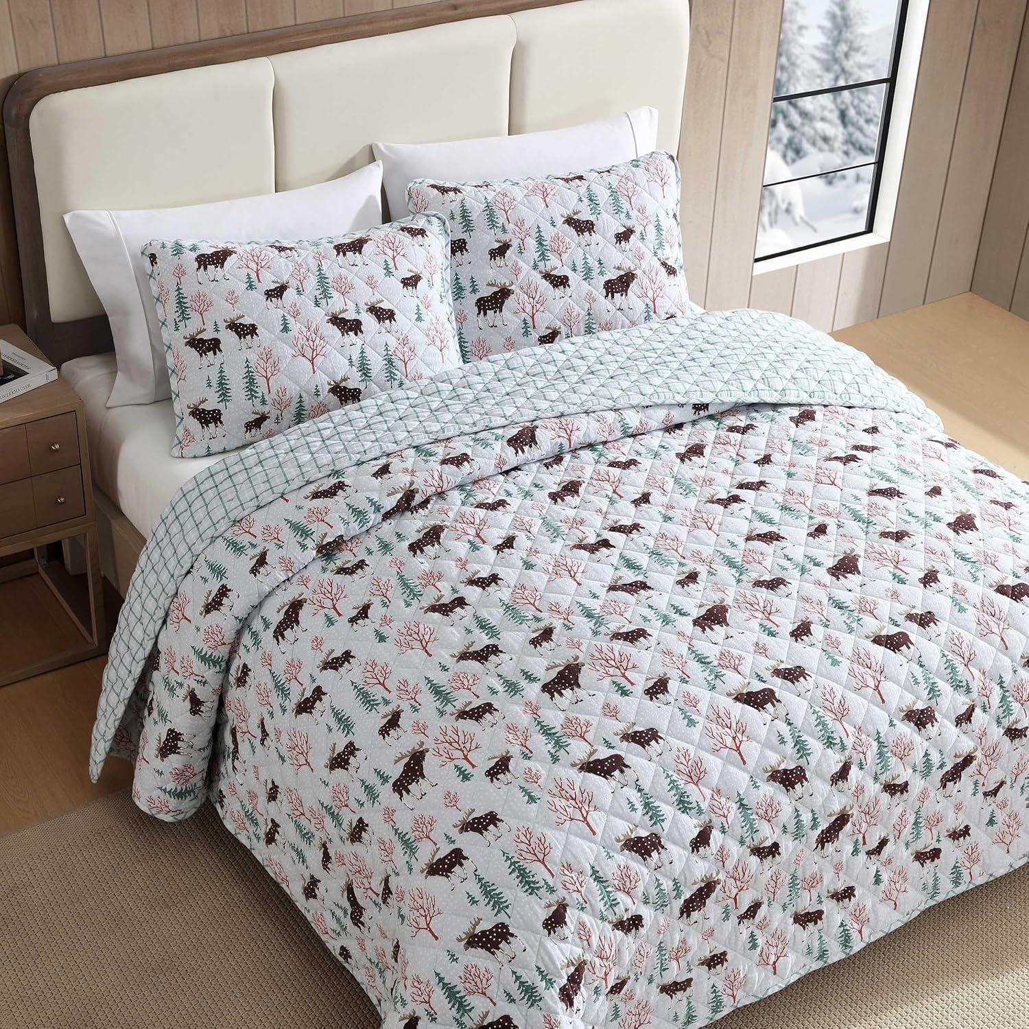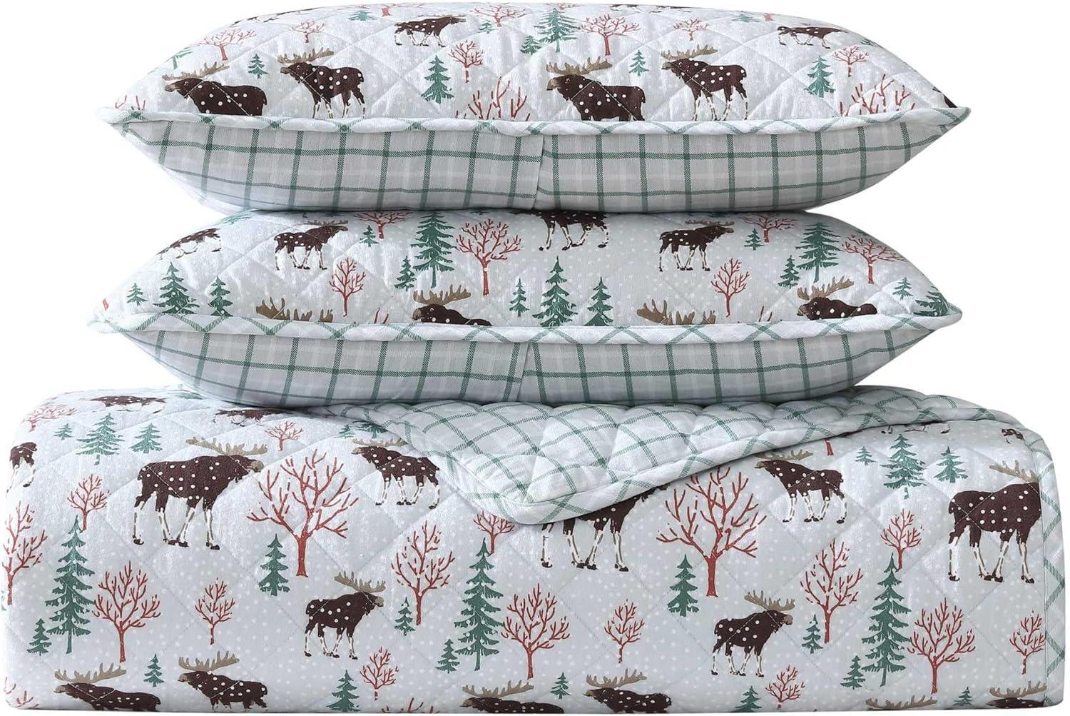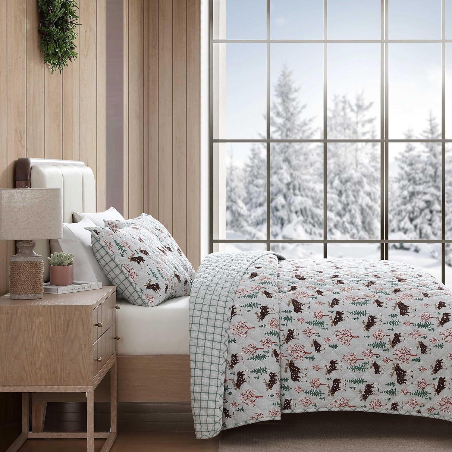 Eddie Bauer – Twin Quilt Set, Super Soft Bedding with Matching Shams, Rounded Corners, Diamond Corner Stitch (Mountain Moose Grey, Twin)(Mountain Moose Grey)