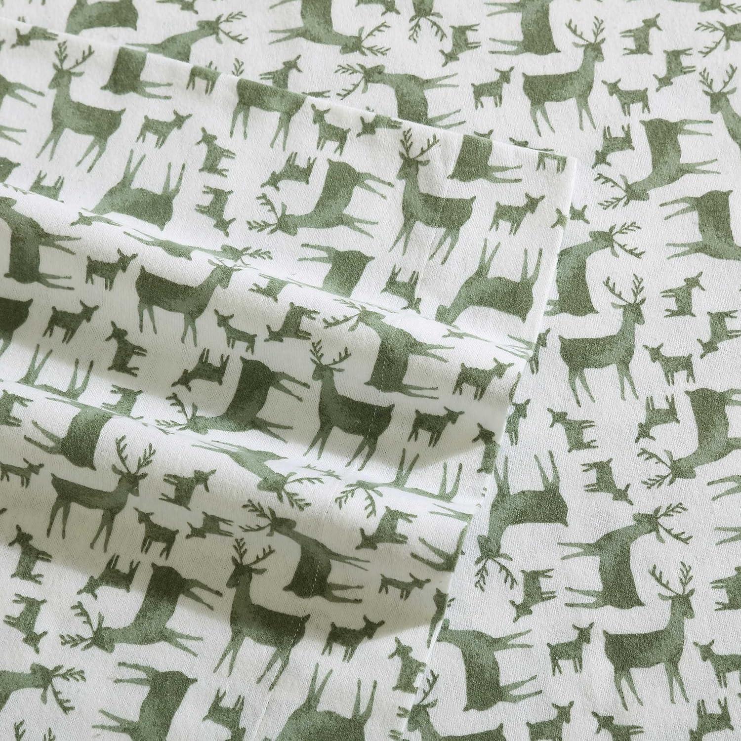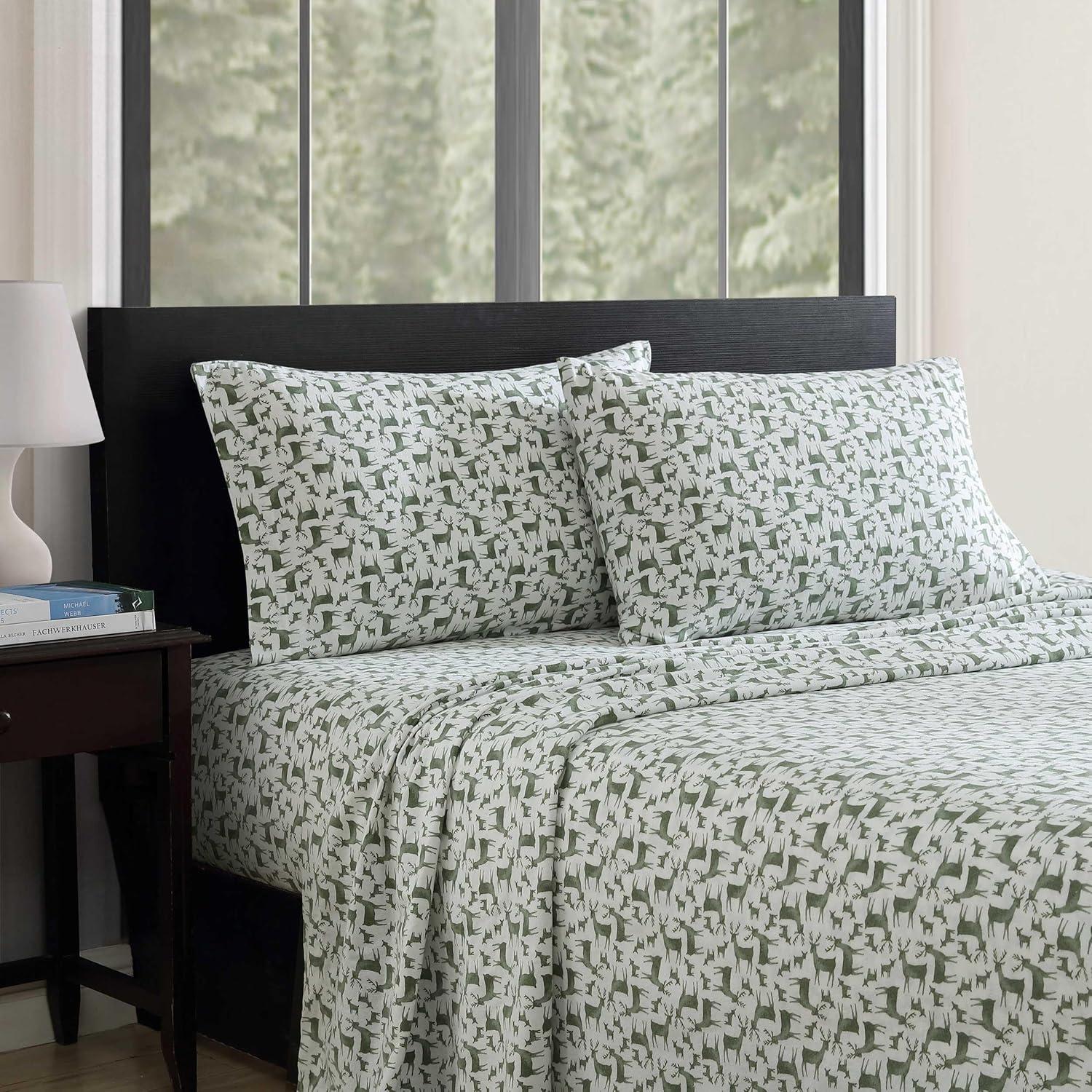 Eddie Bauer- Twin Sheet Set, Cotton Flannel Bedding Set, Brushed for Extra Softness, Cozy Home Décor (Bear Mountain Grey, Twin)(Deer Camp Green)