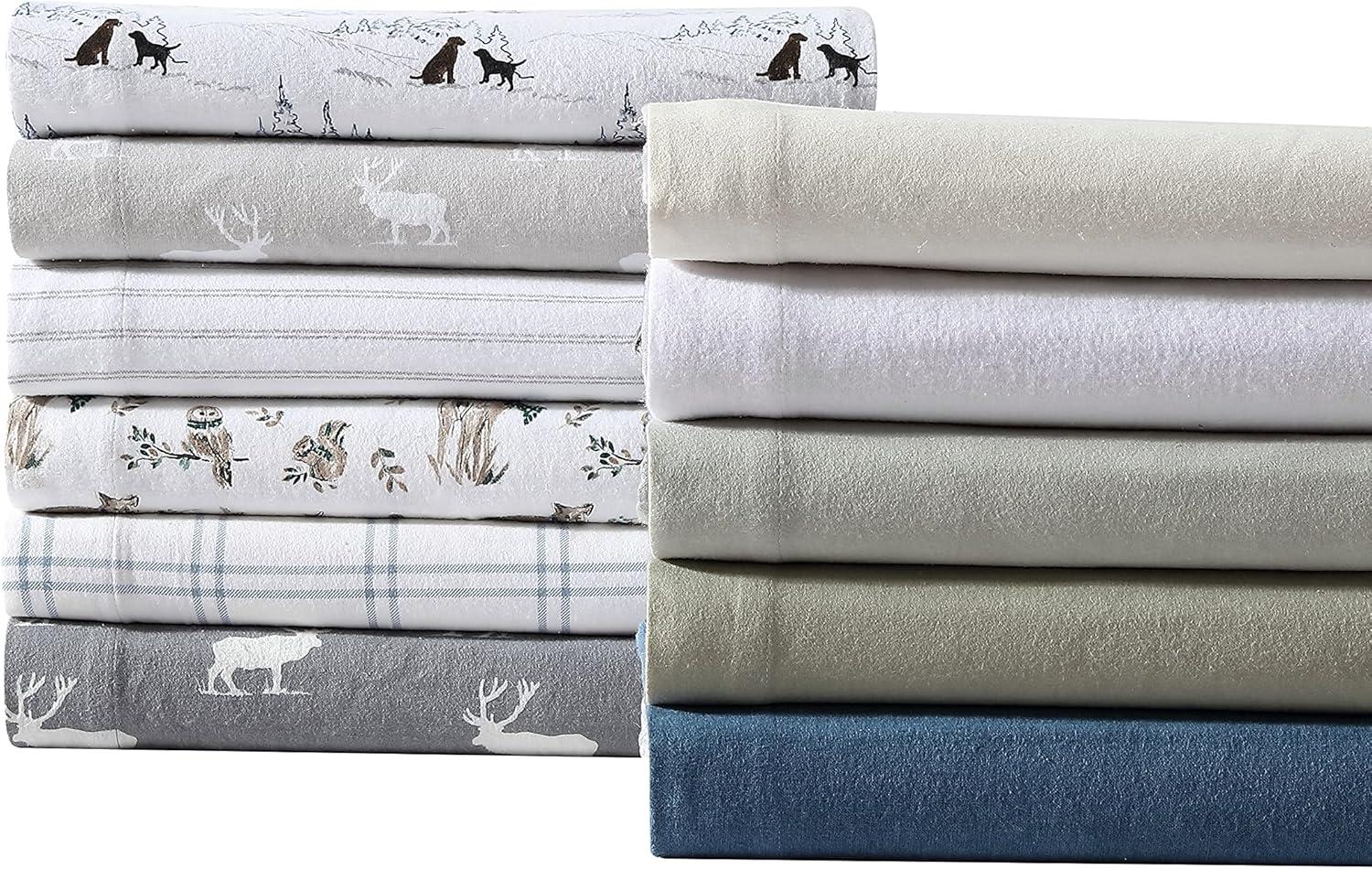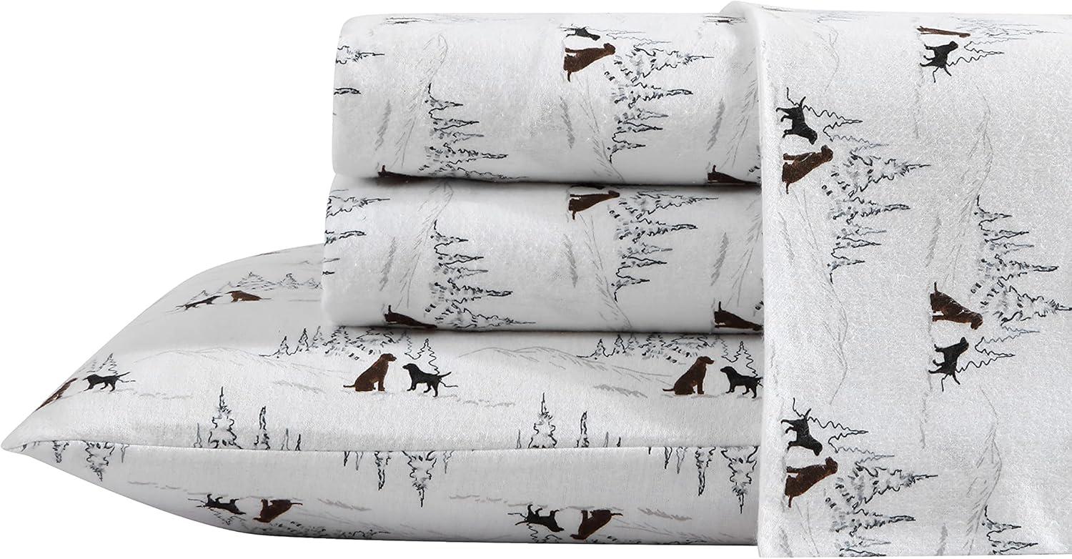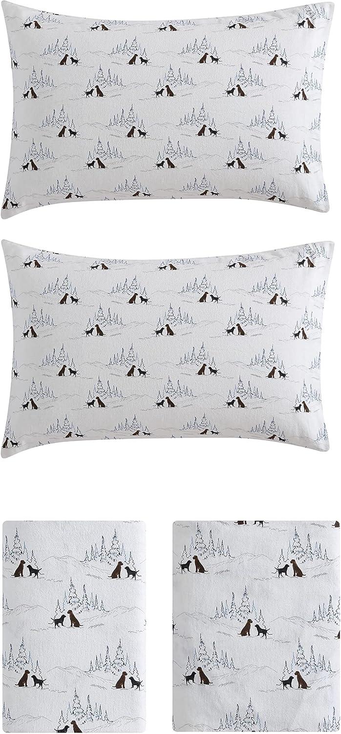Eddie Bauer- Twin Sheet Set, Cotton Flannel Bedding Set, Brushed for Extra Softness, Cozy Home Décor (Bear Mountain Grey, Twin)(Dog Friends White)