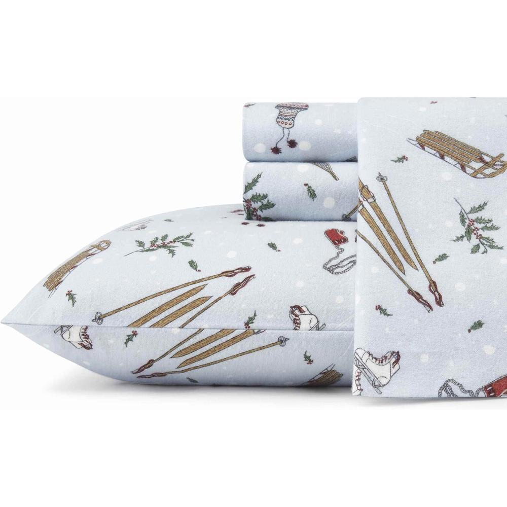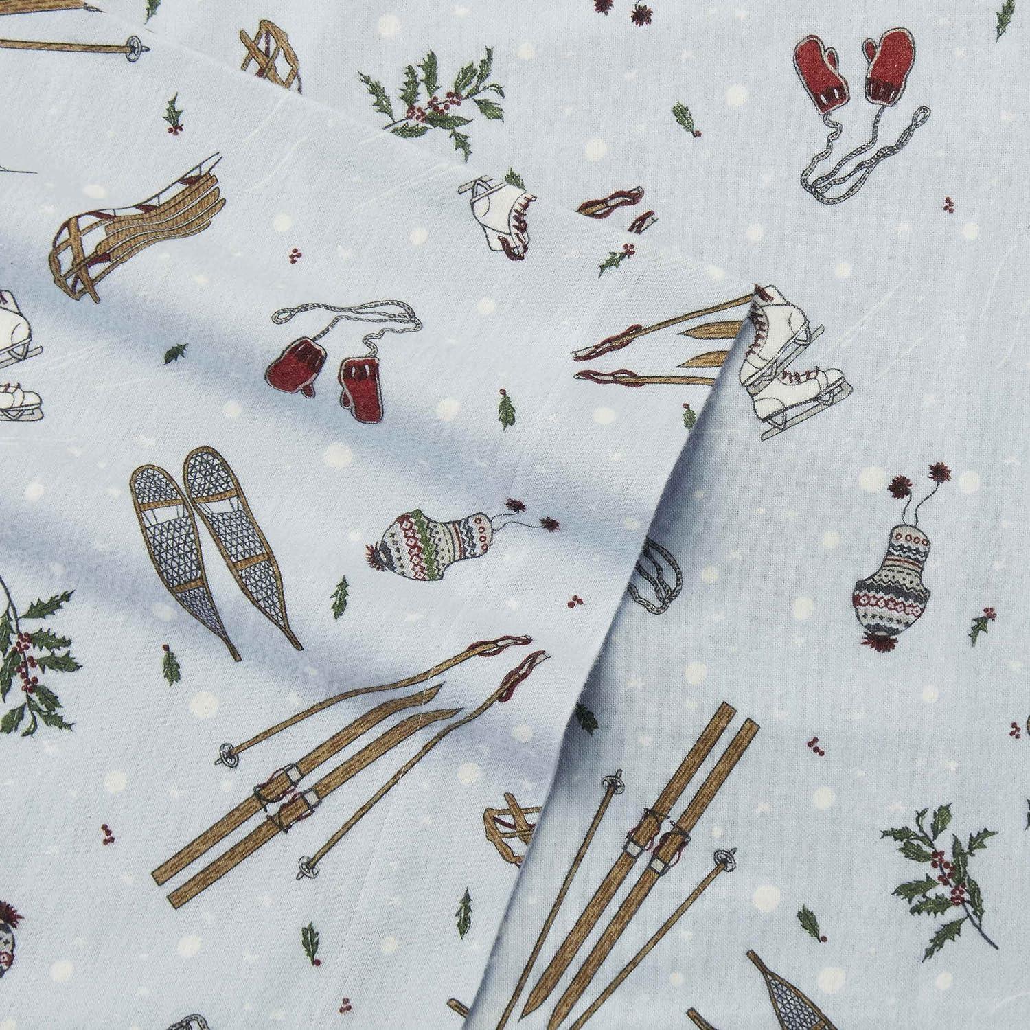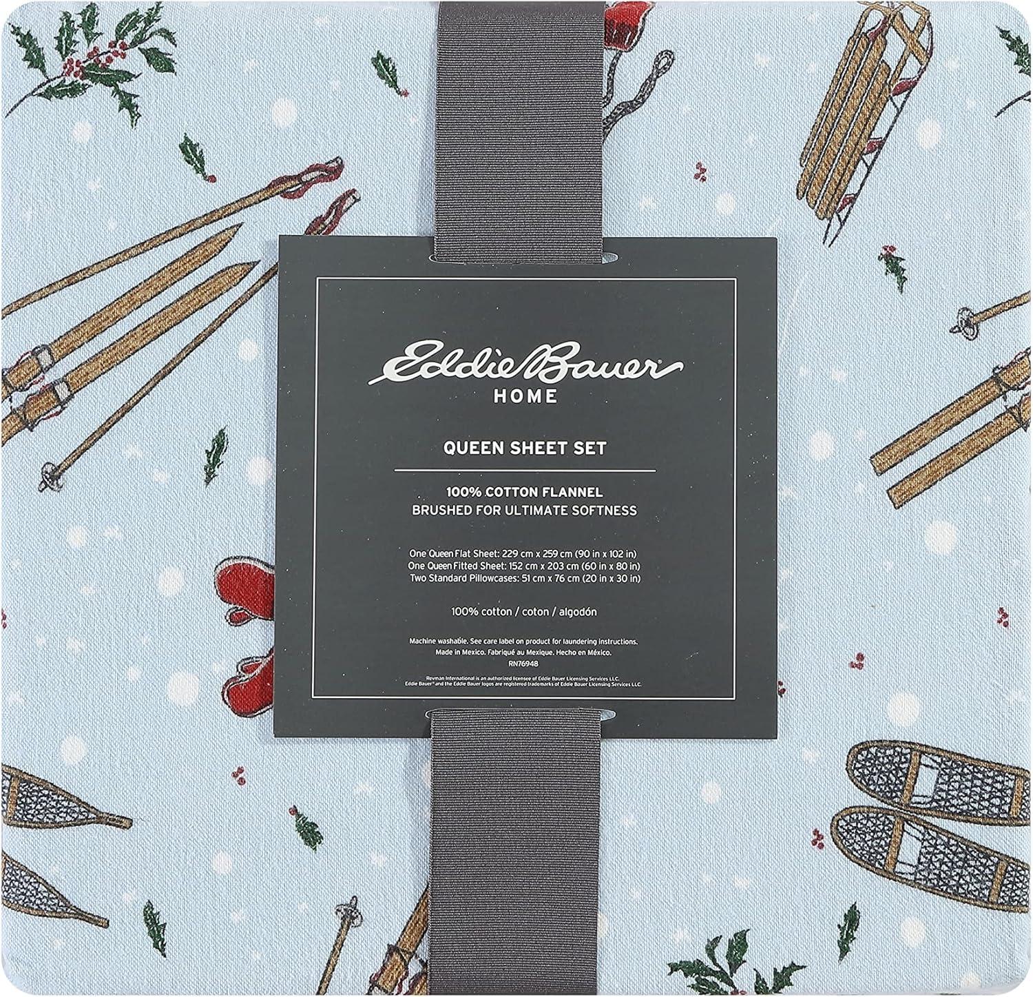 Eddie Bauer- Twin Sheet Set, Cotton Flannel Bedding Set, Brushed for Extra Softness, Cozy Home Décor (Bear Mountain Grey, Twin)(Snow Days Pale Blue)