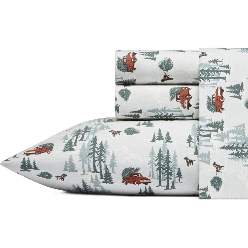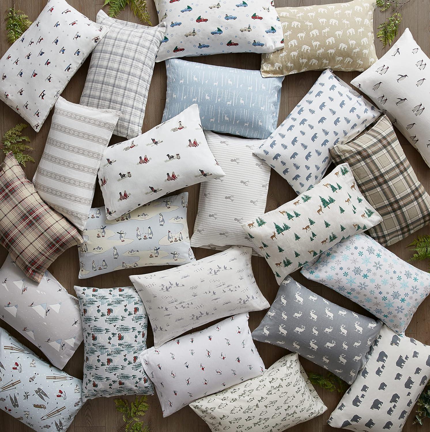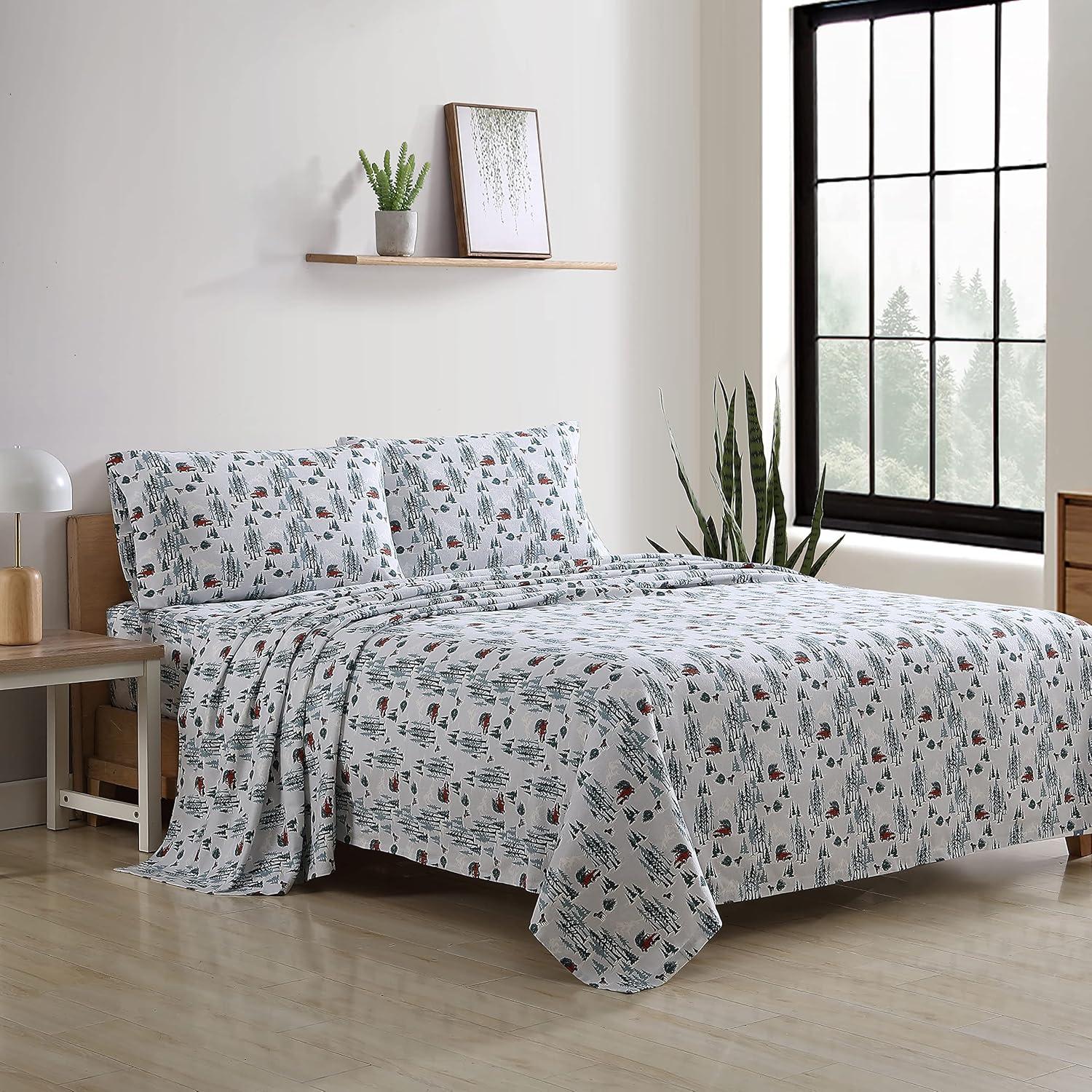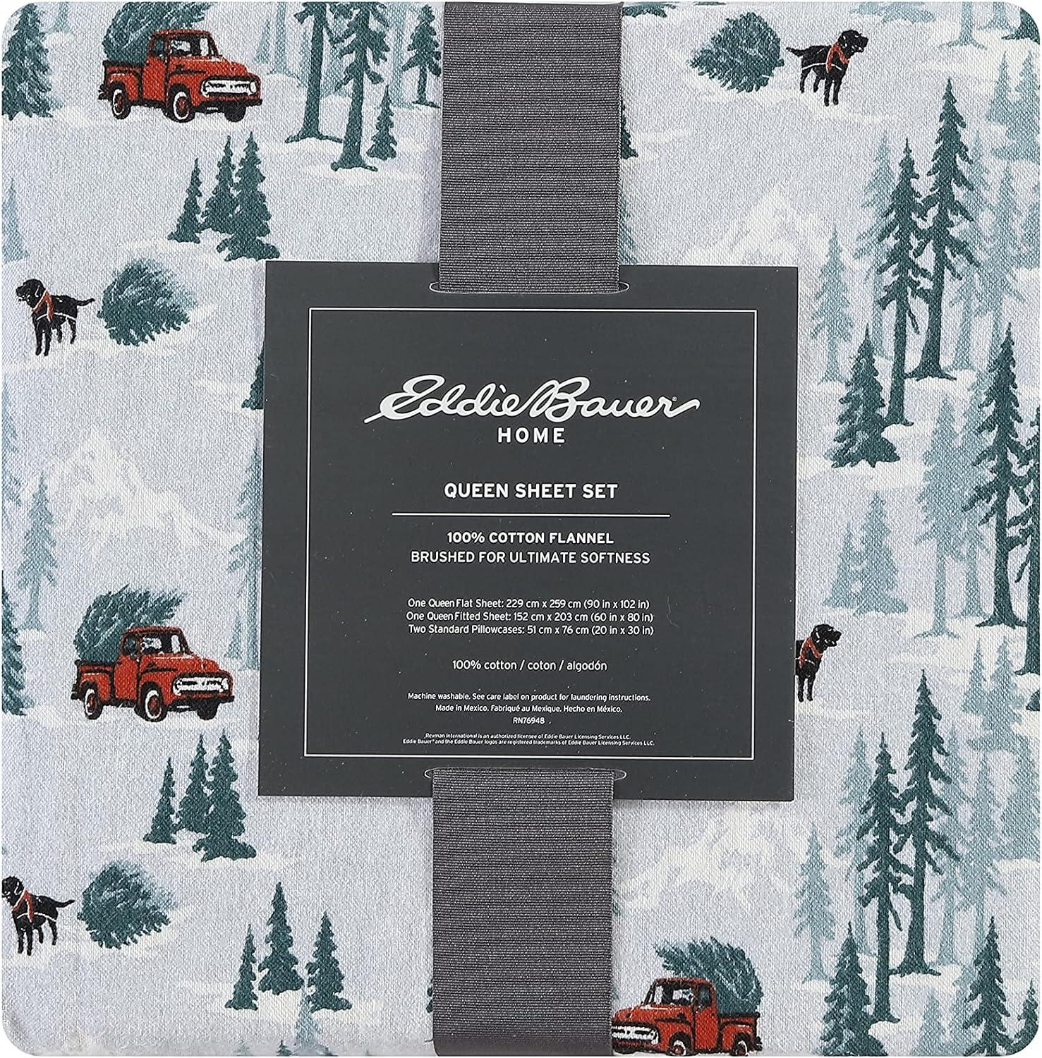 Eddie Bauer- Twin Sheet Set, Cotton Flannel Bedding Set, Brushed for Extra Softness, Cozy Home Décor (Bear Mountain Grey, Twin)(Tree Farm Light Blue)