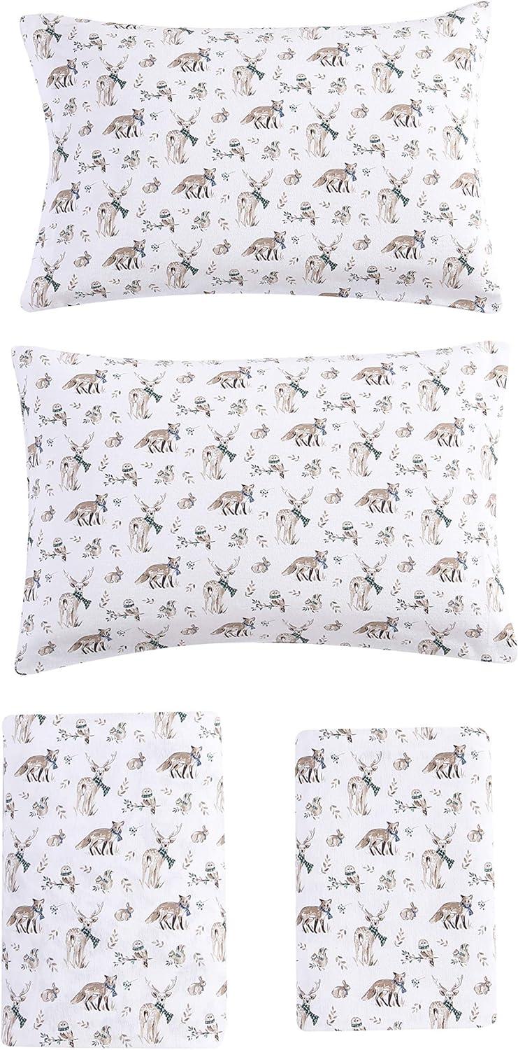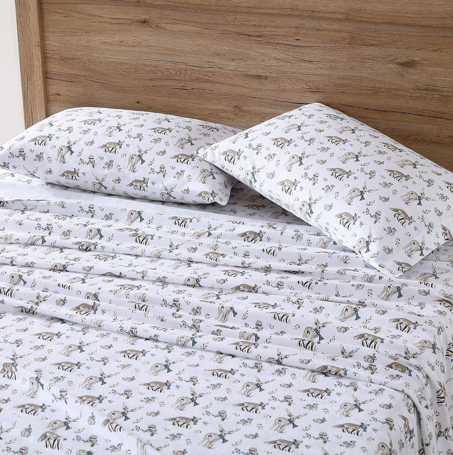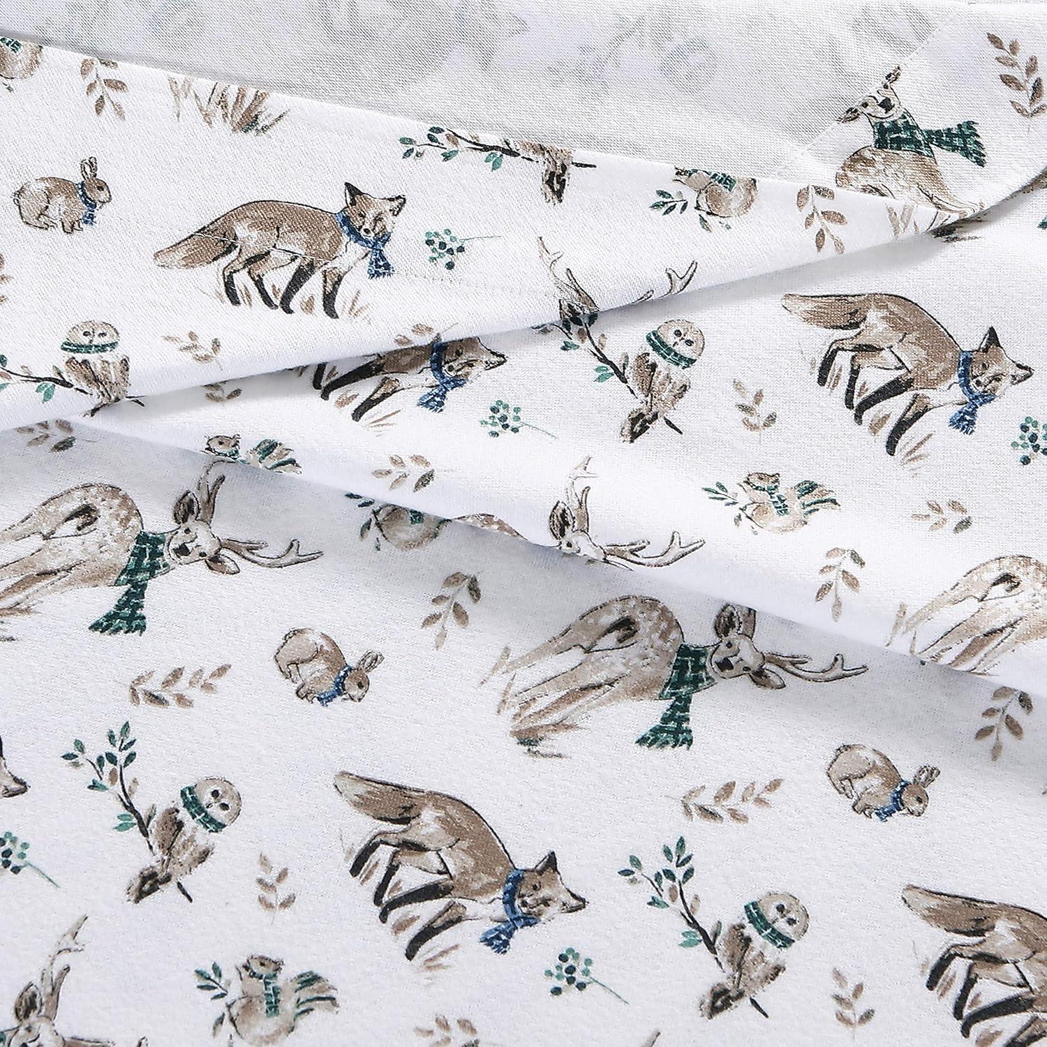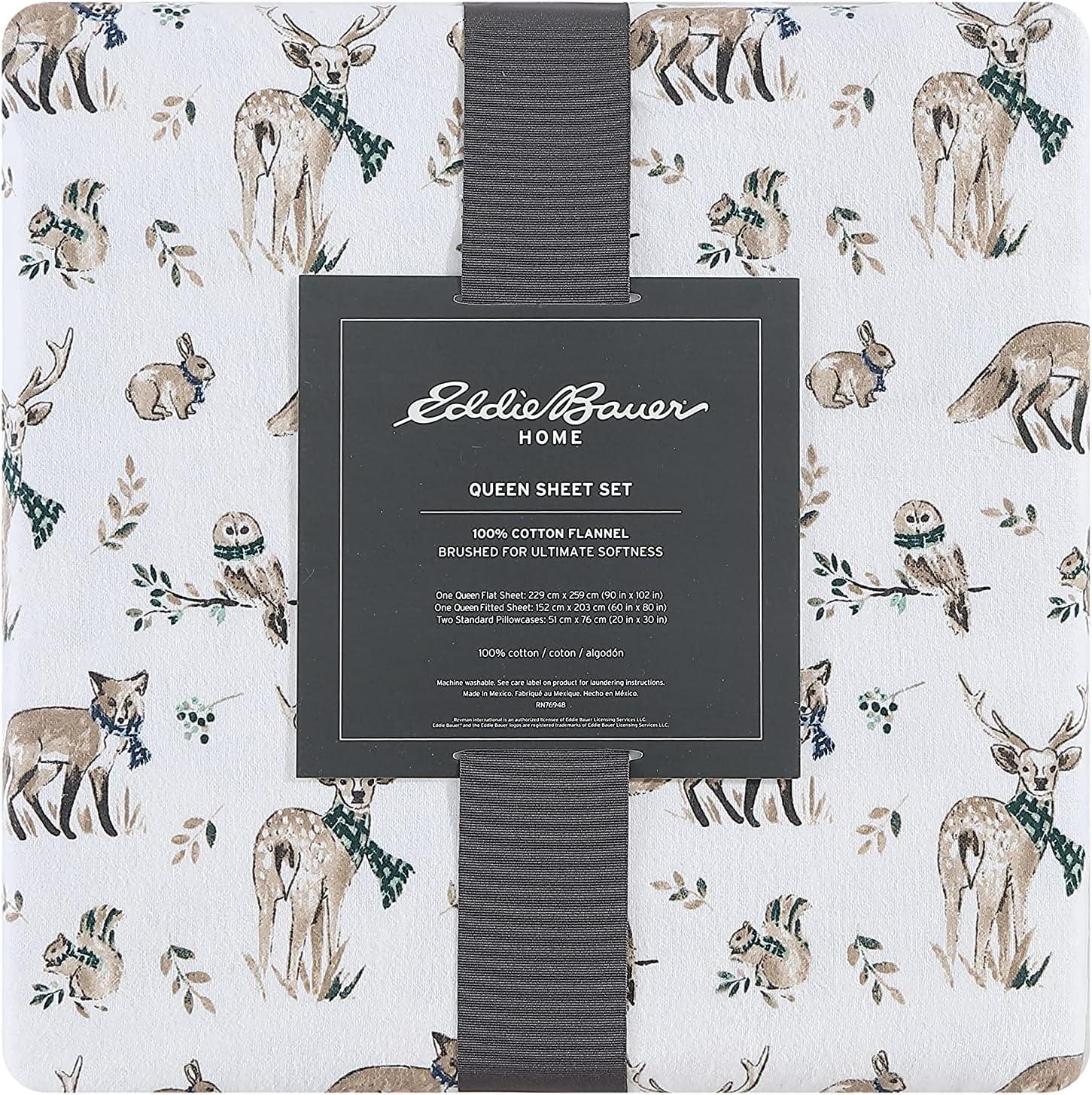 Eddie Bauer- Twin Sheet Set, Cotton Flannel Bedding Set, Brushed for Extra Softness, Cozy Home Décor (Bear Mountain Grey, Twin)(Woodland Friends Brown/Blue/White)