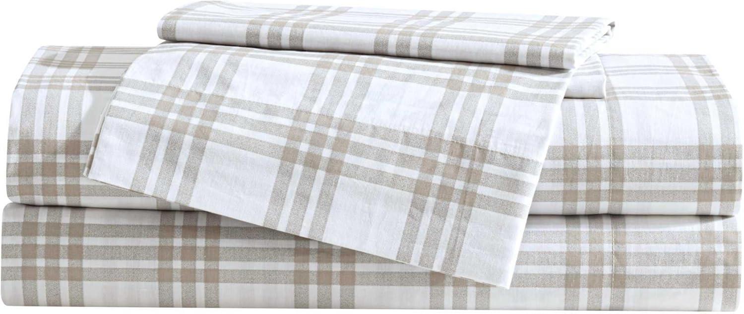 Eddie Bauer – Twin Sheet Set, Cotton Percale Bed Sheets, Crisp & Cool, Ideal Dorm Essentials (Canoe Lake Paddle White, Twin)(Basic Plaid Beige)