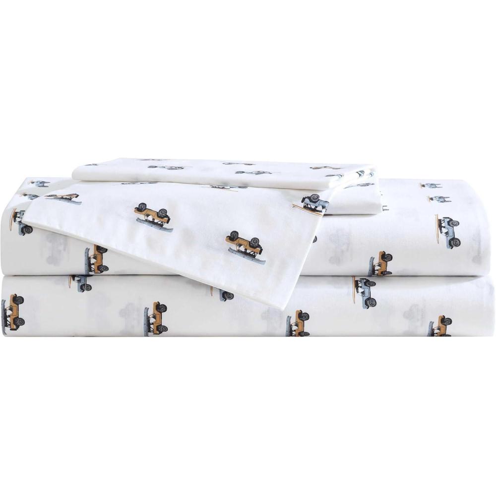 Eddie Bauer – Twin Sheet Set, Cotton Percale Bed Sheets, Crisp & Cool, Ideal Dorm Essentials (Canoe Lake Paddle White, Twin)(Out to the Beach Orange)