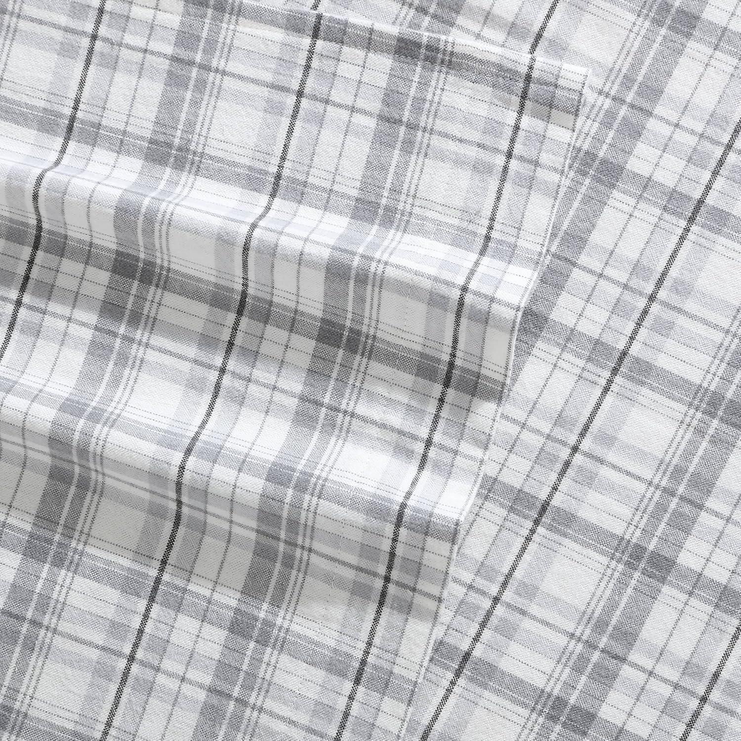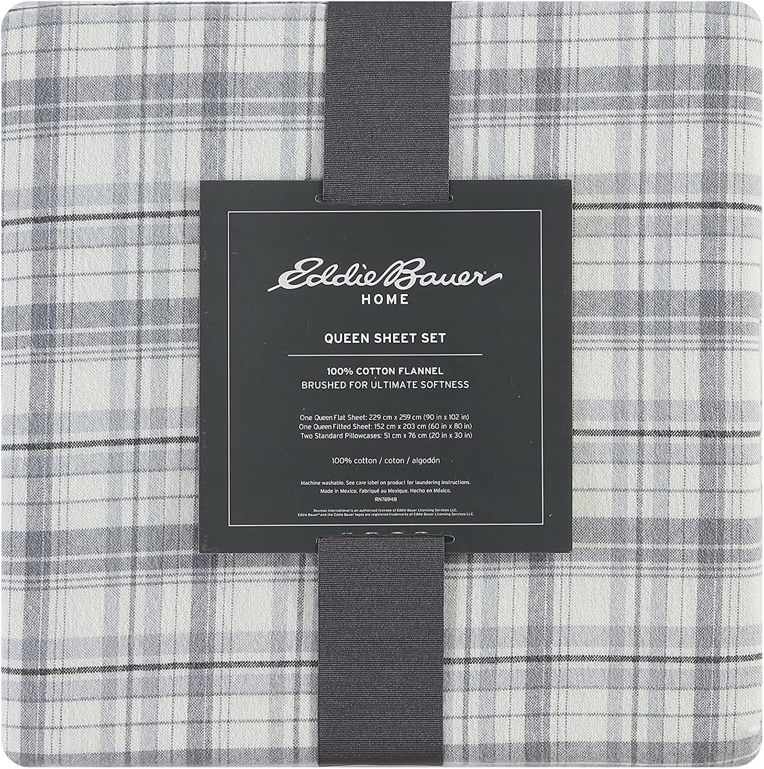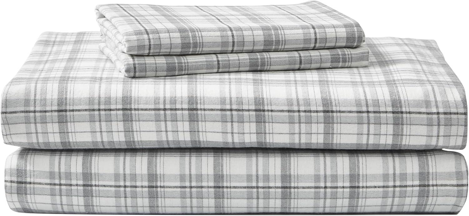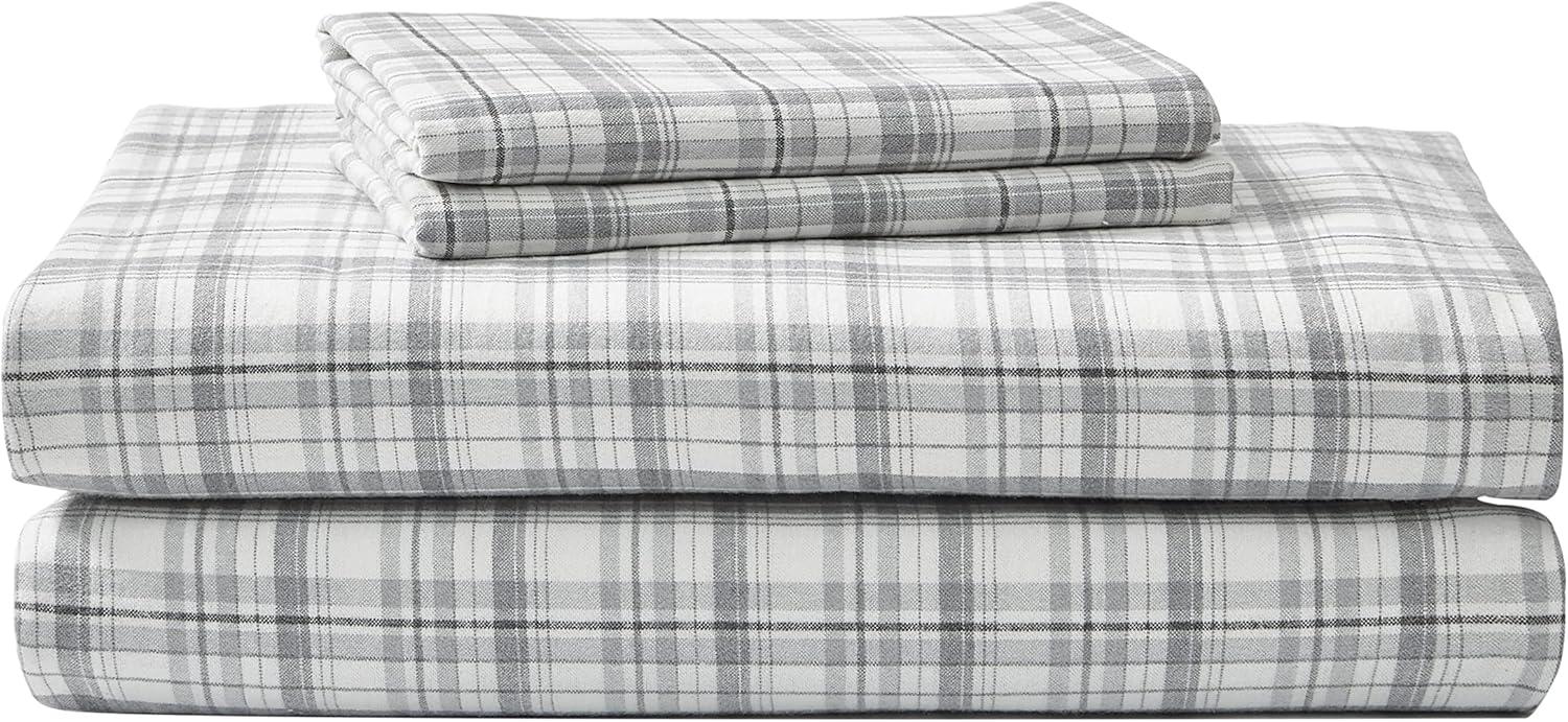 Eddie Bauer – Twin Sheets, Cotton Flannel Bedding Set, Brushed For Extra Softness, Cozy Home Decor (Montlake Plaid, Twin)(Beacon Hill Grey/Ivory)