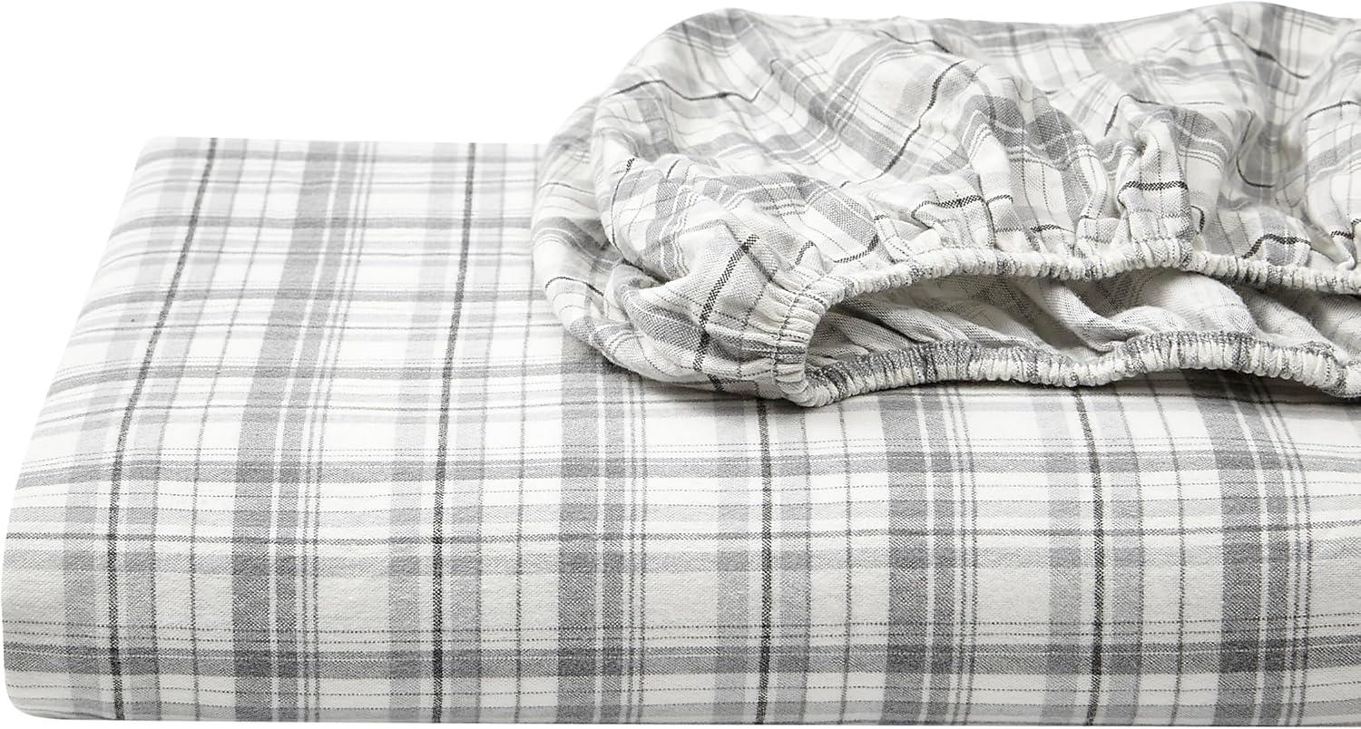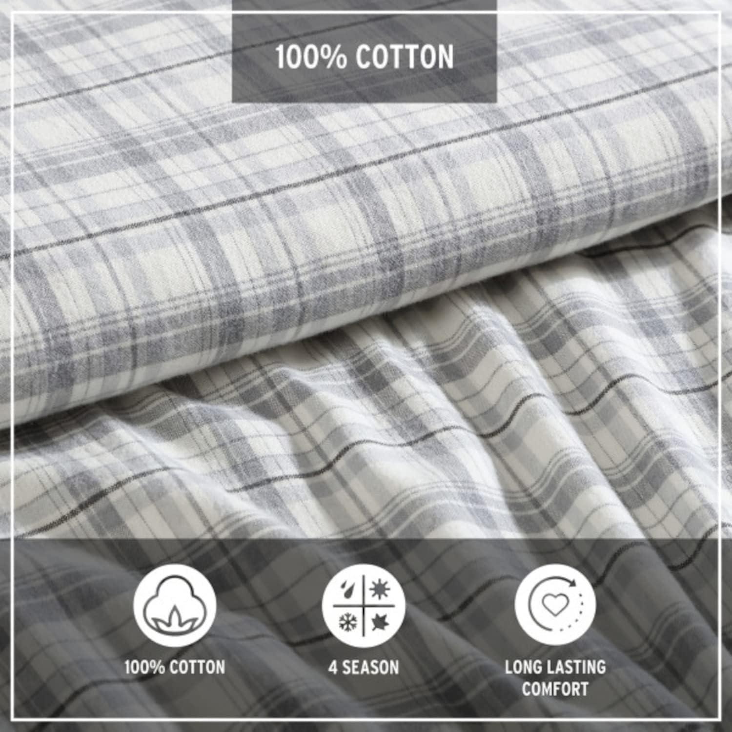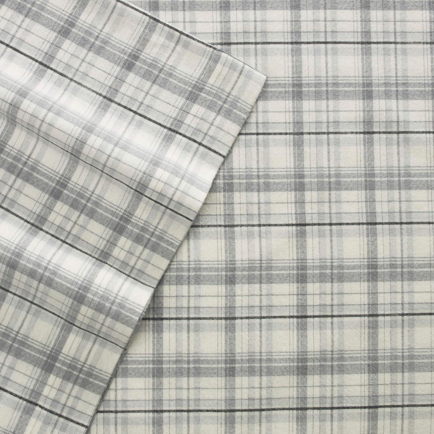 Eddie Bauer – Twin Sheets, Cotton Flannel Bedding Set, Brushed For Extra Softness, Cozy Home Decor (Montlake Plaid, Twin)(Beacon Hill Grey/Ivory)