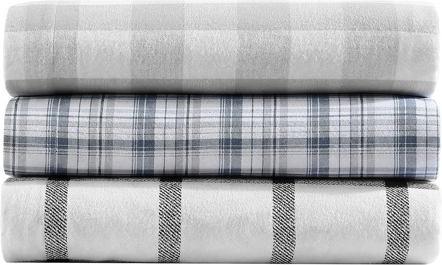 Eddie Bauer – Twin Sheets, Cotton Flannel Bedding Set, Brushed For Extra Softness, Cozy Home Decor (Montlake Plaid, Twin)(Bunkhouse Plaid Charcoal/White)