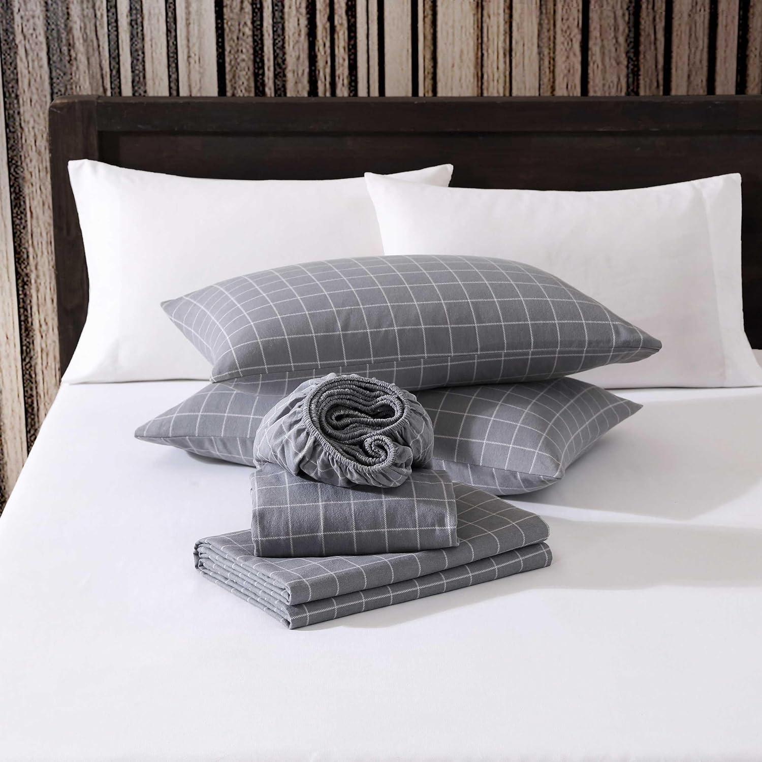Eddie Bauer – Twin Sheets, Cotton Flannel Bedding Set, Brushed For Extra Softness, Cozy Home Decor (Montlake Plaid, Twin)(Great Plains Plaid Grey)