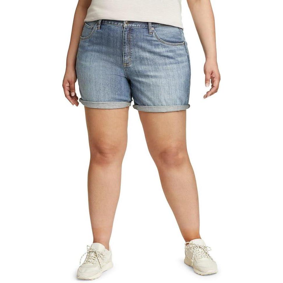 Eddie Bauer Women’s Boyfriend Rolled Denim Shorts – Relaxed Fit(Med Denim)