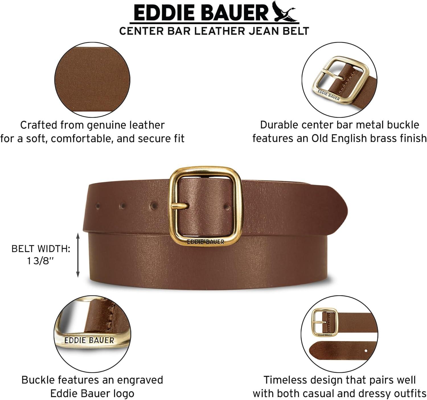 Eddie Bauer Women’s Casual Leather Belts with Durable Metal Buckle(Center Bar – Tan)
