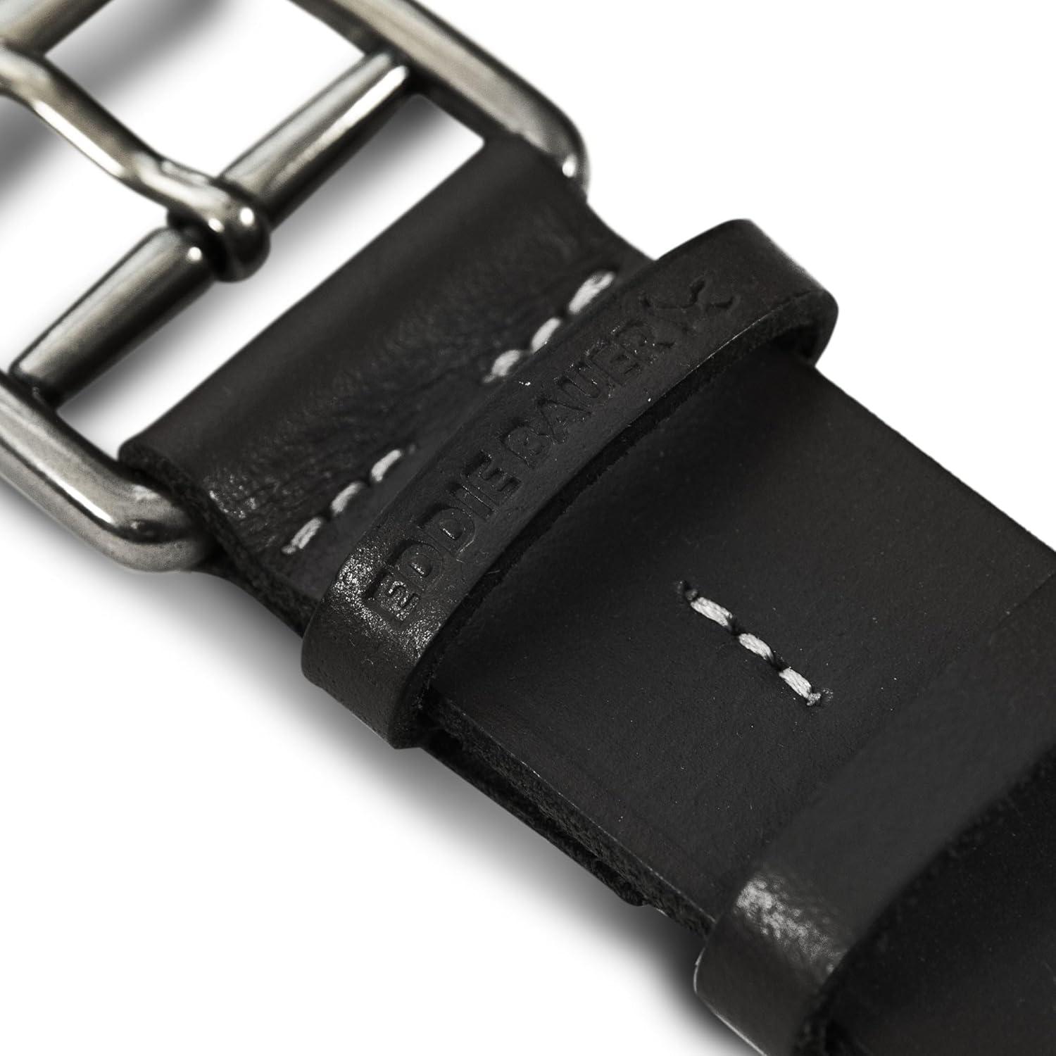 Eddie Bauer Women’s Casual Leather Belts with Durable Metal Buckle(Double Keeper – Black)