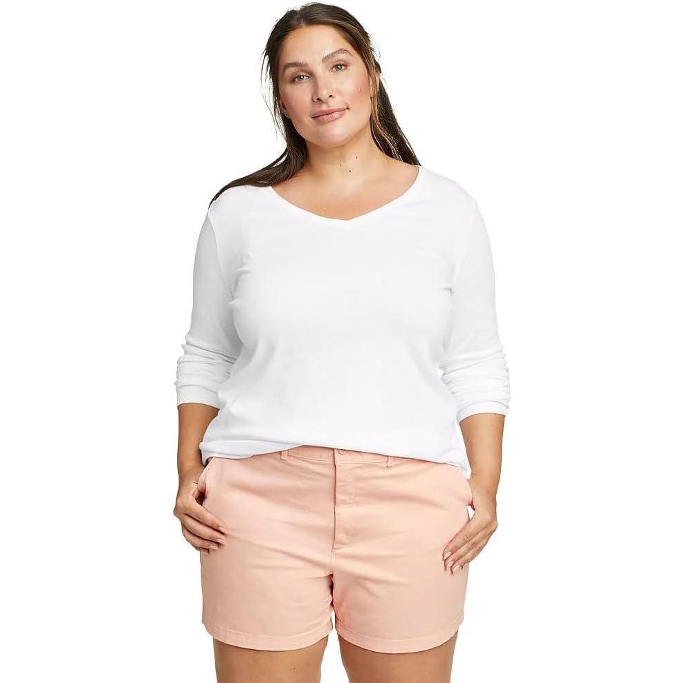 Eddie Bauer Women’s Favorite Long-Sleeve V-Neck T-Shirt(White)